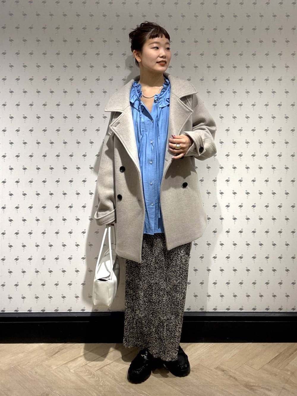 【アウター】free ジャケット感覚でスタイリングできるウールコート! ウール80%の高混率なので 暖かいです!見た目は重たそうに見えますが意外と軽い^_^🌈 【ボトム】Sサイズ ヒップ90cm ウエストオールゴムのプリーツスカートです! とにかく伸びます!!! お店でいつもお客様にびっくりされるくらい伸びます!! このスカートなら自転車乗れます🚲🩵