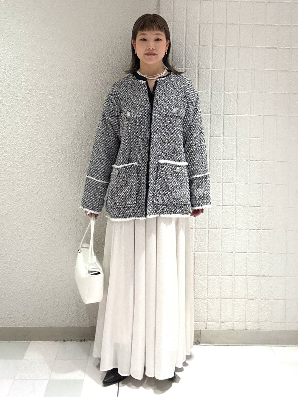 【アウター】Mサイズ きちんと感が出るツイードジャケット! 軽くて、体型カバーも出来て最高な逸品です✨😆 【ボトム】Mサイズ 上品な光沢感を楽しめるフレアスカート! ポリエステル素材なのでシワになりにくいです!