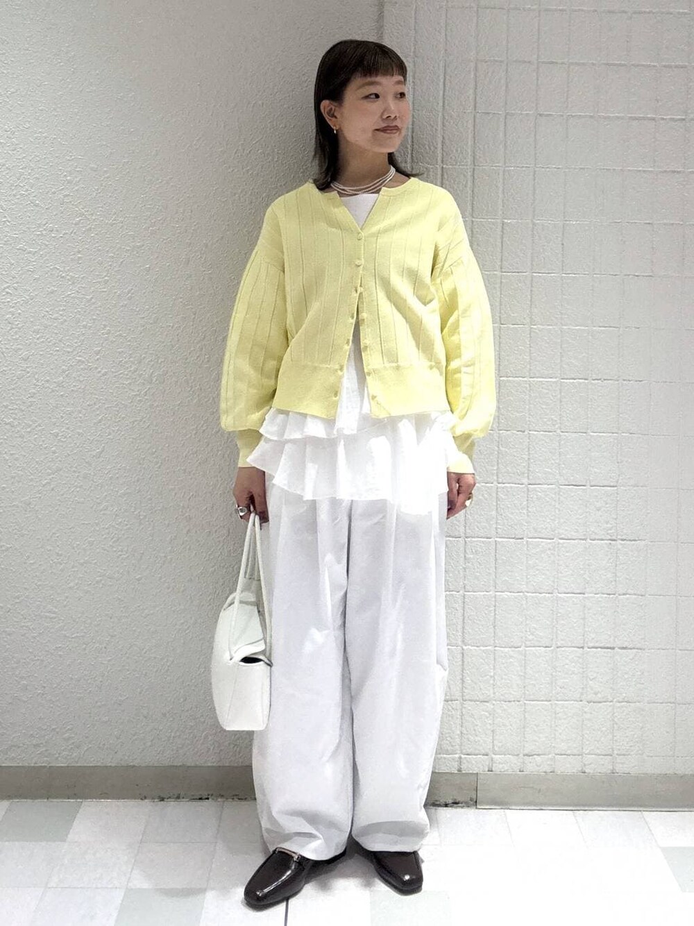 【トップス】 お仕事ニーズにも合わせやすいカーディガン! ランダムに入った編み柄がアクセントになり、シンプルながら高見えの印象に😇 【ボトム】Sサイズ ウエストオールゴム! ハリがあるコクーンパンツ!身体のラインを拾わないシルエットが神!!!