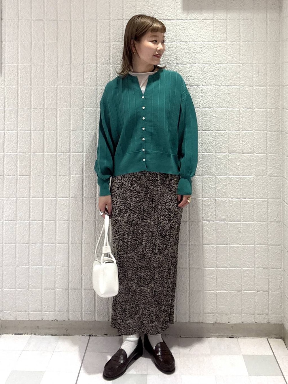 【トップス】 お仕事ニーズにも合わせやすいカーディガン! ランダムに入った編み柄がアクセントになり、シンプルながら高見えの印象に😇 【ボトム】Sサイズ ヒップ90cm ウエストオールゴムのプリーツスカートです! とにかく伸びます!!! お店でいつもお客様にびっくりされるくらい伸びます!! このスカートなら自転車乗れます🚲🩵