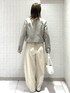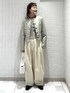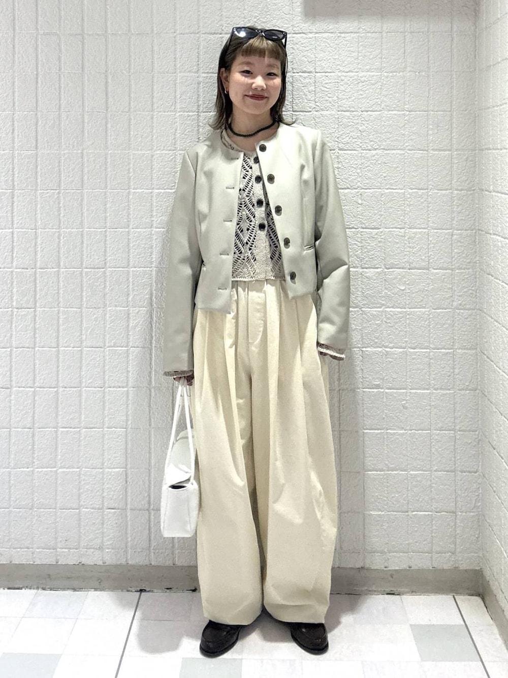 【アウター】 ショート丈のレザージャケット🗼🌏 衿付なしなので、スカート合わせだと綺麗めにも使えます✨✌️お呼ばれや、セレモニーにもぴったり🗼🪼 【ボトム】Sサイズ ウエストオールゴム! ハリがあるコクーンパンツ!身体のラインを拾わないシルエットが神!!!
