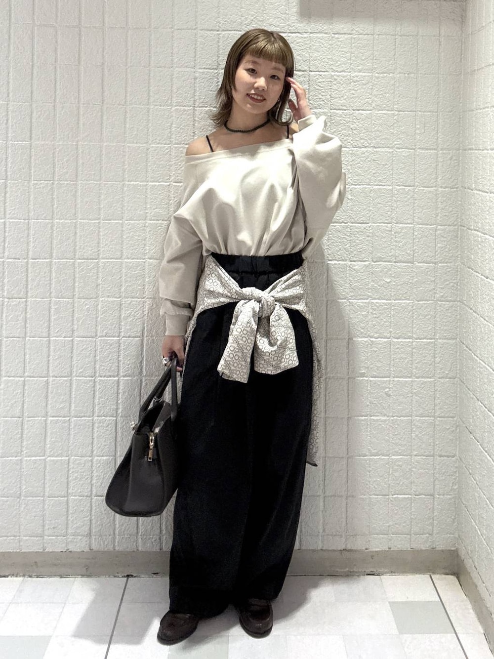 sayaka(apart by lowrys ルミネエスト)のスラックス「スラックスコクーンボリュームパンツ」を使ったコーディネート