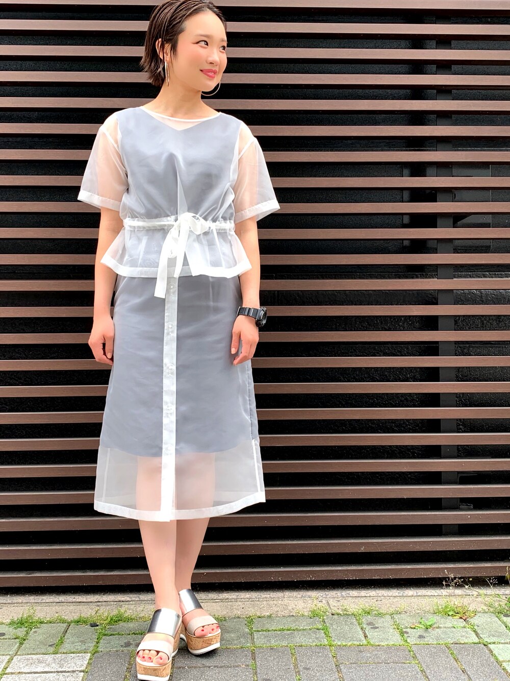 程よい透け感が大人っぽさと上品さをプラスしてくれる❤︎ シアー素材のトップスとスカートのセットアップスタイル❤︎