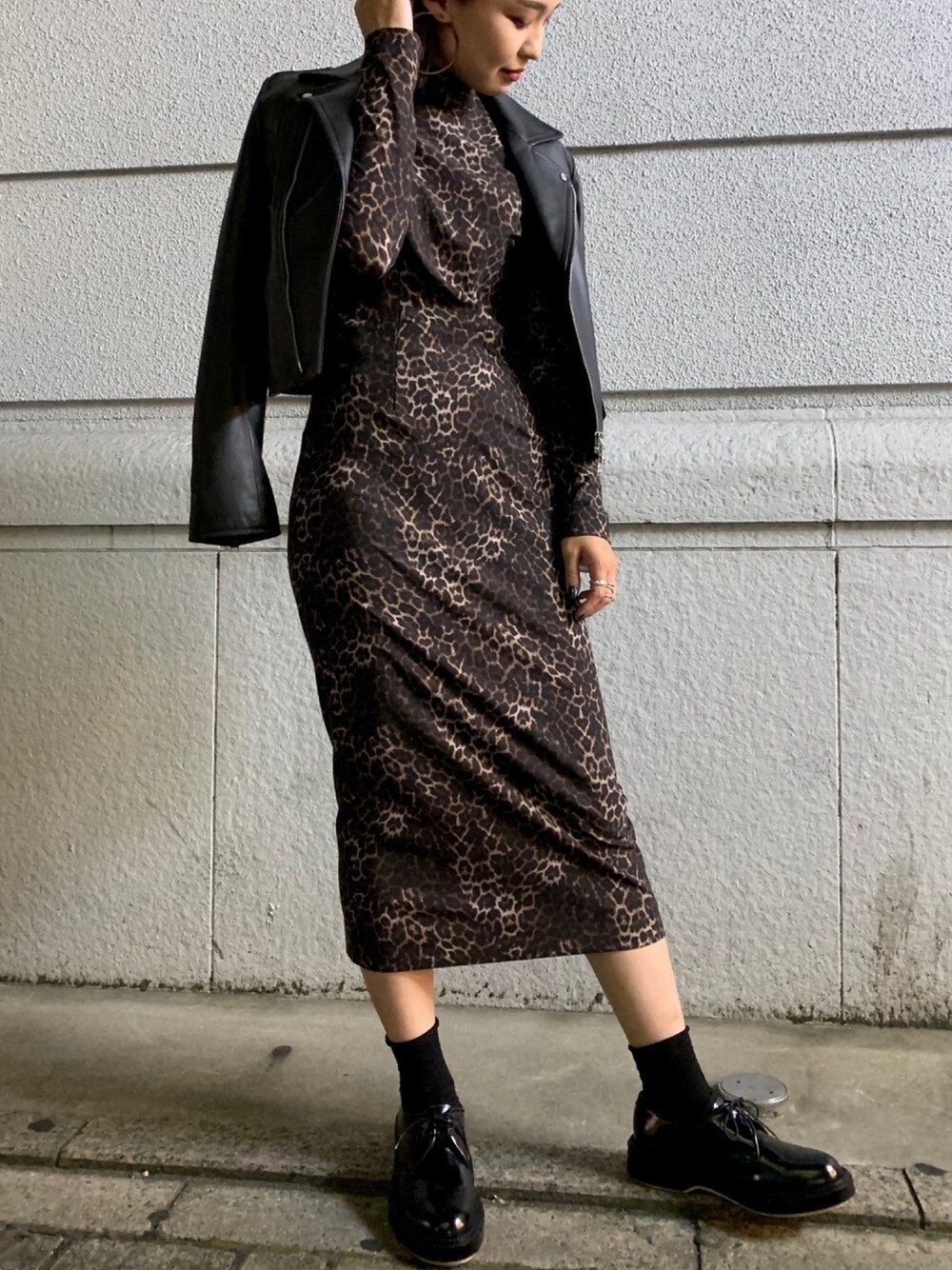 レザー×アニマル柄で秋モードなコーデ♡