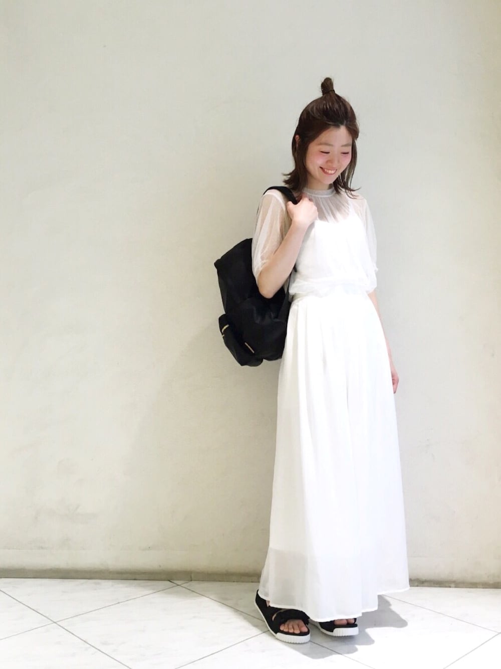 Sayaka Takeguchiのシャツ/ブラウス「ドットチュールハイネックショートスリーブブラウス/ AEMFC DOTチュール H/N SSL◆」を使ったコーディネート