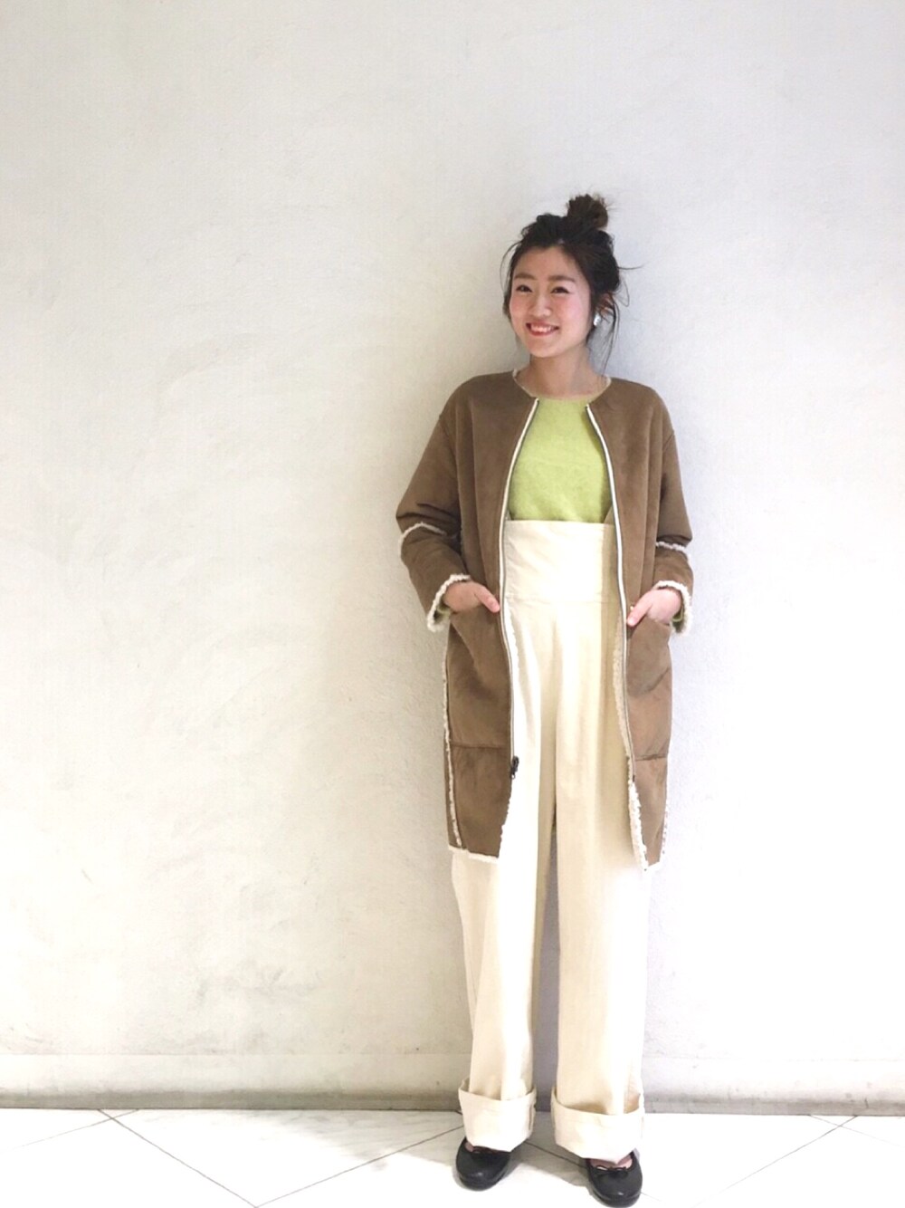 Sayaka Takeguchiのムートンコート「フェイクボアリバーシブルコート/AEMBC FAKE BOA RIV CT◆」を使ったコーディネート