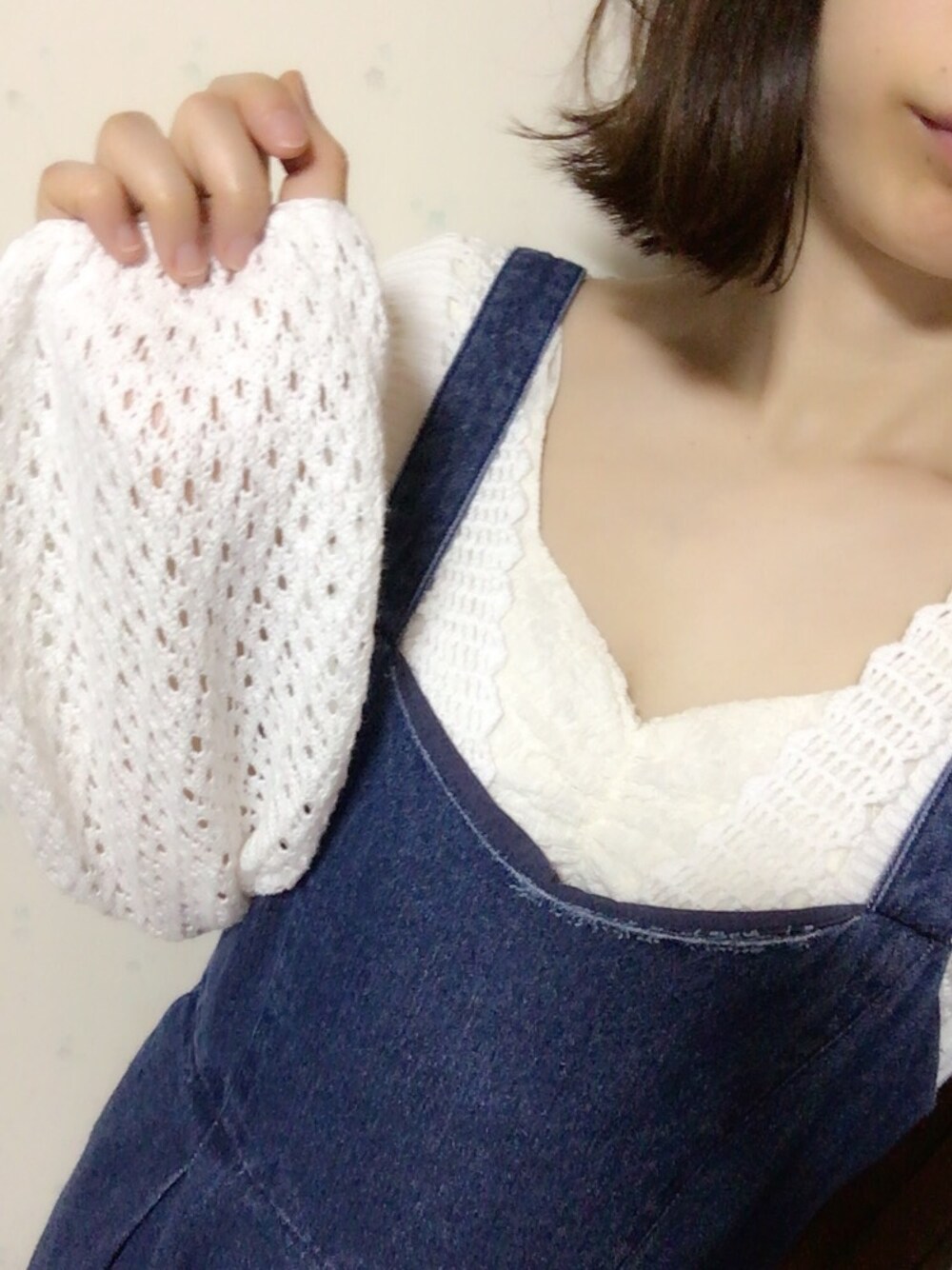 お気に入りの洋服♡ kastaneの服ほんまかわいすぎる〜☺️💕💕 白色、デニムとかが着たい気分♡ かぎ編み長袖プルオーバー レースキャミ デニムオーバオール converse(グレー)