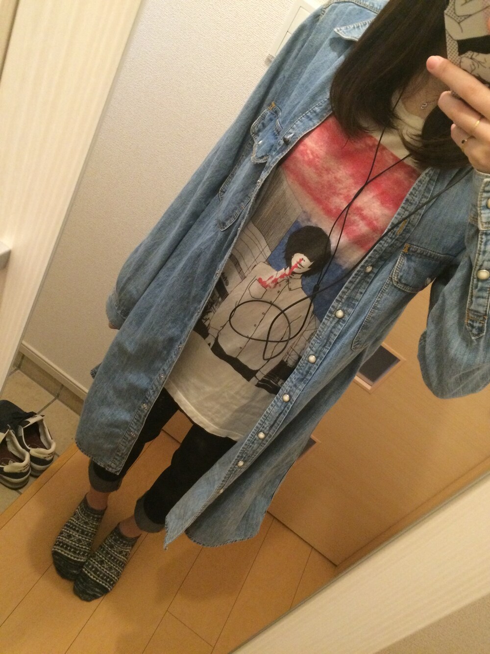 ゆるゆるコーデですね〜 昼間はあったかいのに、まだ夜は少し寒いです(´・ω・`)