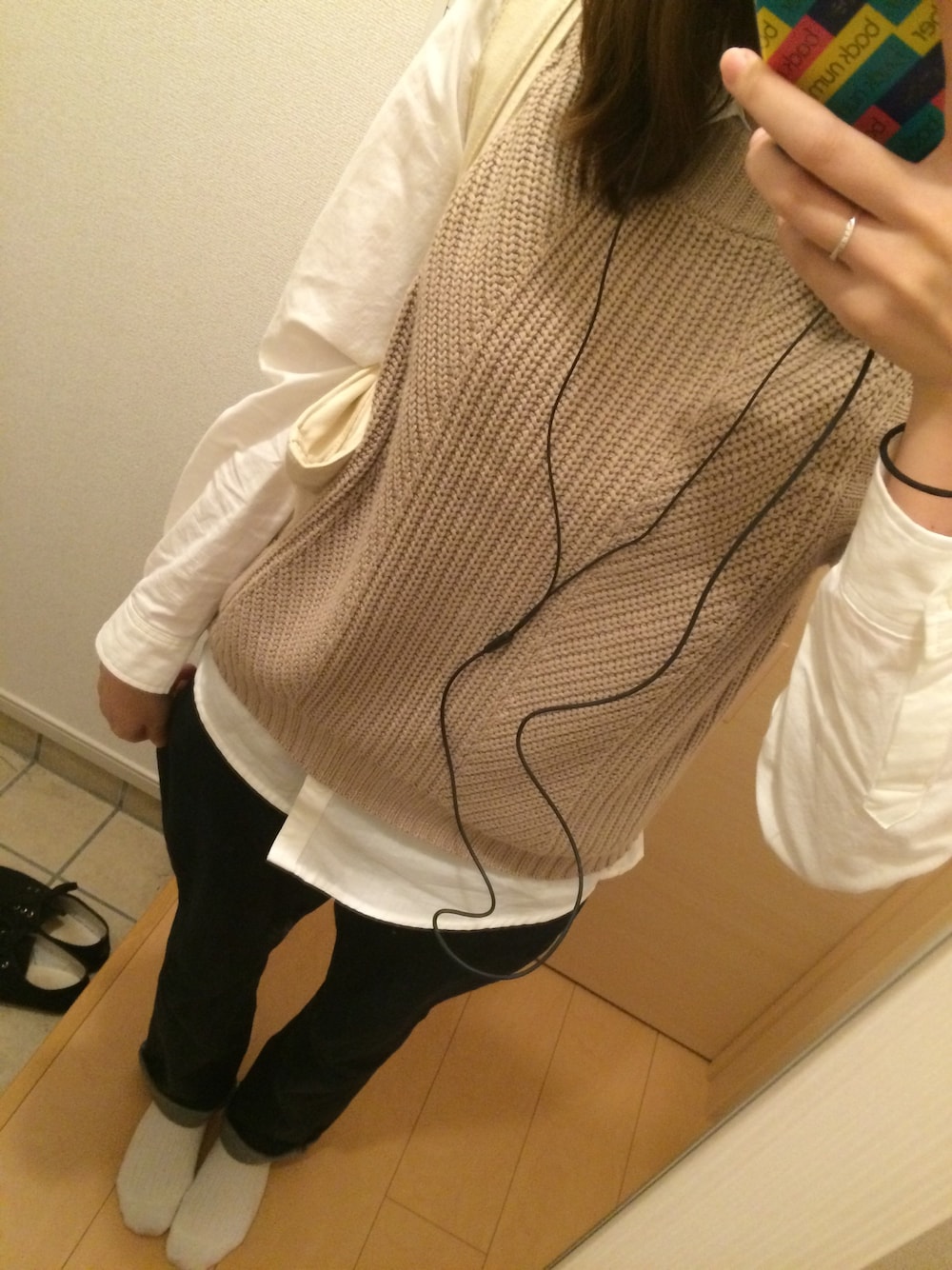 しゃむのニット/セーター「Uベスト×シャツセットプルオーバー」を使ったコーディネート