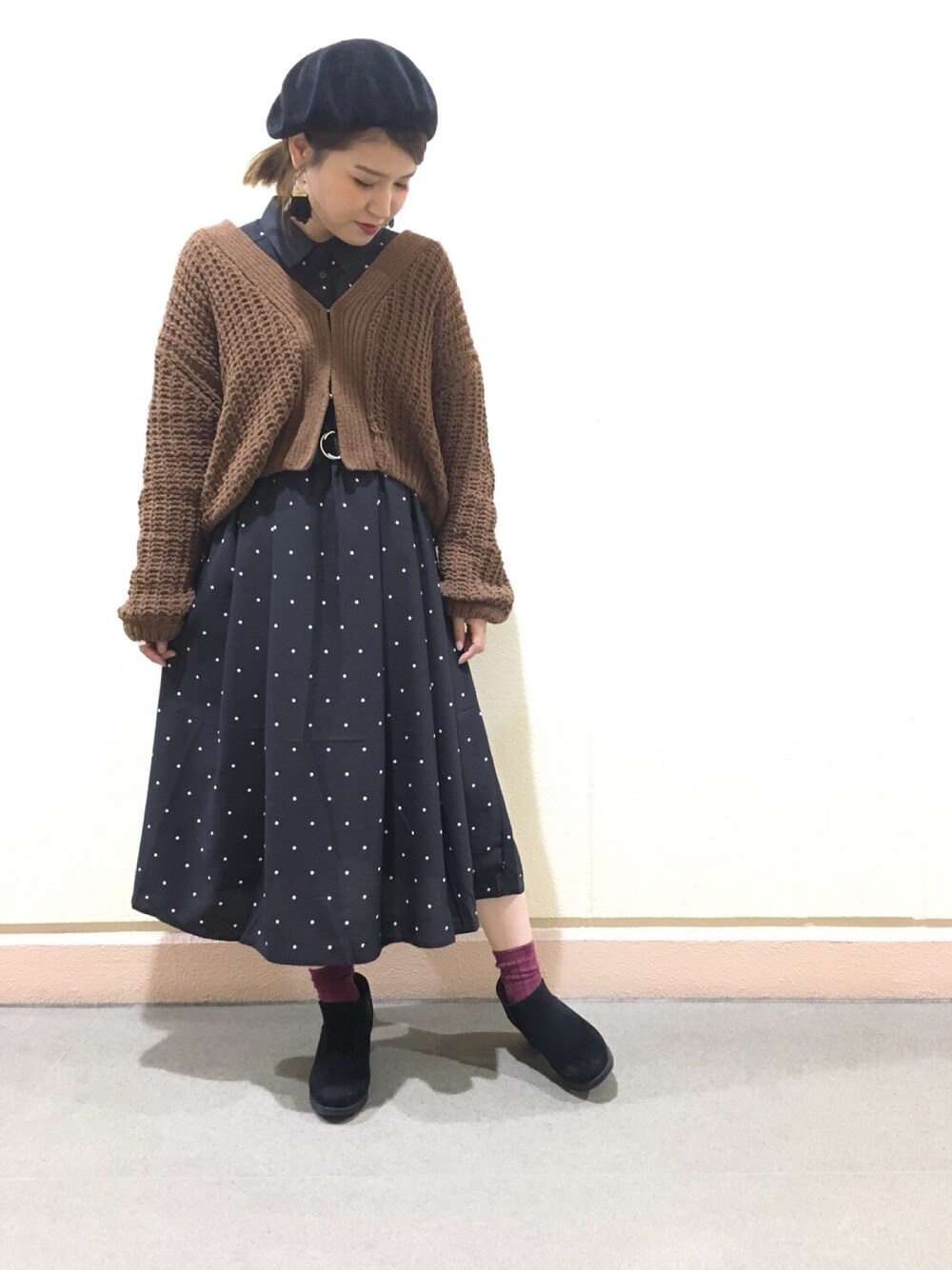 襟付きのガーリーなワンピースにモールのカーディガンをあわせました❤️ おじかわなカーデが可愛いですよね😍❤️ すニートと合わせてカジュアルでも、ヒールと合わせてキレイめにも。 ほんとに幅広く使えるワンピです👗 カーディガンは軽くてとっても暖かいです💝 何よりこの丈の短さ‼️ パンツと着たら足長に見えること間違いなしです🙆