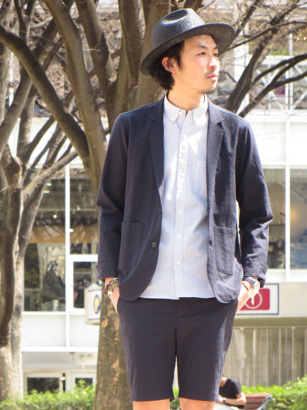 こんにちは。 代筆担当ナルカワです。 今日は久しぶりにセットアップスタイルです(^^) トレンドを紐解くと、 まだまだスポーツテイストが色濃く出ています。 ですので、セットアップを堅苦しくまとめるのではなく、 スポーツテイストを加えて軽やかに仕上げています。 大きく説明すると、ポイントはそれだけなんですが、 ナルカワ的魅力は、生地。 近くで見ると、実は凹凸感のあるチェック柄なんです。 (写真をご参照ください。) それをセットアップで。 尚且つトレンドを意識したスタイルでまとめました。 たまに気分を変えたい時は、セットアップなんていかがですか? これくらいなら、ラフに着こなせますよ(^^)b ではでは