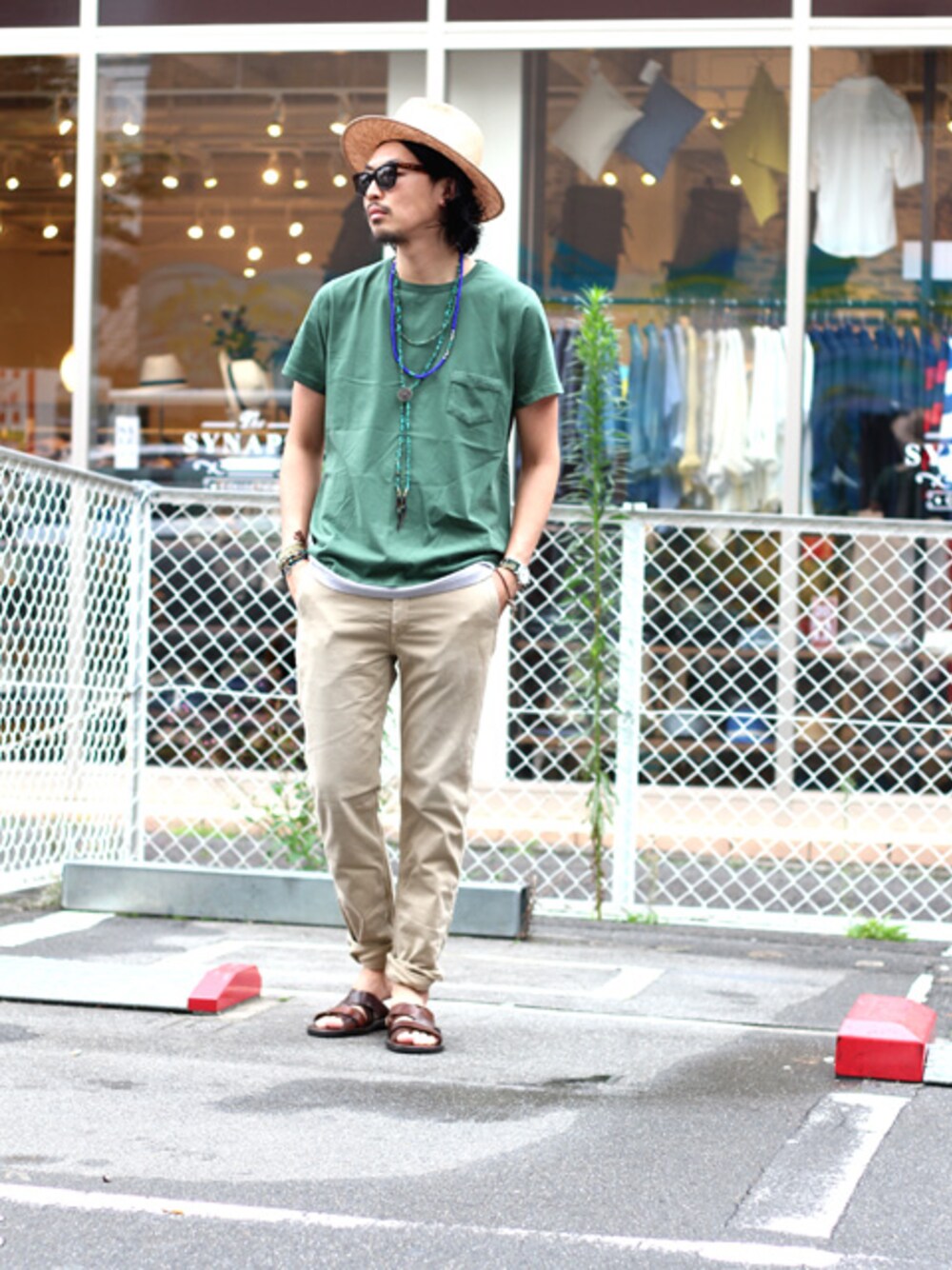本日はカーキをメインとしたコーディネイト!!! 僕はこのような色使いはあんまりしないのですが カーキカラーが旬とNEVERまとめに書いてあったのでマネしてみました 笑 !! このREMIのカットソーは素材良し、サイズ感良し、カラー良しの3拍子揃った一枚。 そこに加工感のあるチノを合わせた爽やかなコーディネイト。 やはり風合いのあるアイテムはシンプルに着こなしても様になるところがいいですね♪♪ そしてお得意のネックレスジャラ付け!!!!!!! アクセサリーはどれだけ持っていても欲しくなるものですよね~www