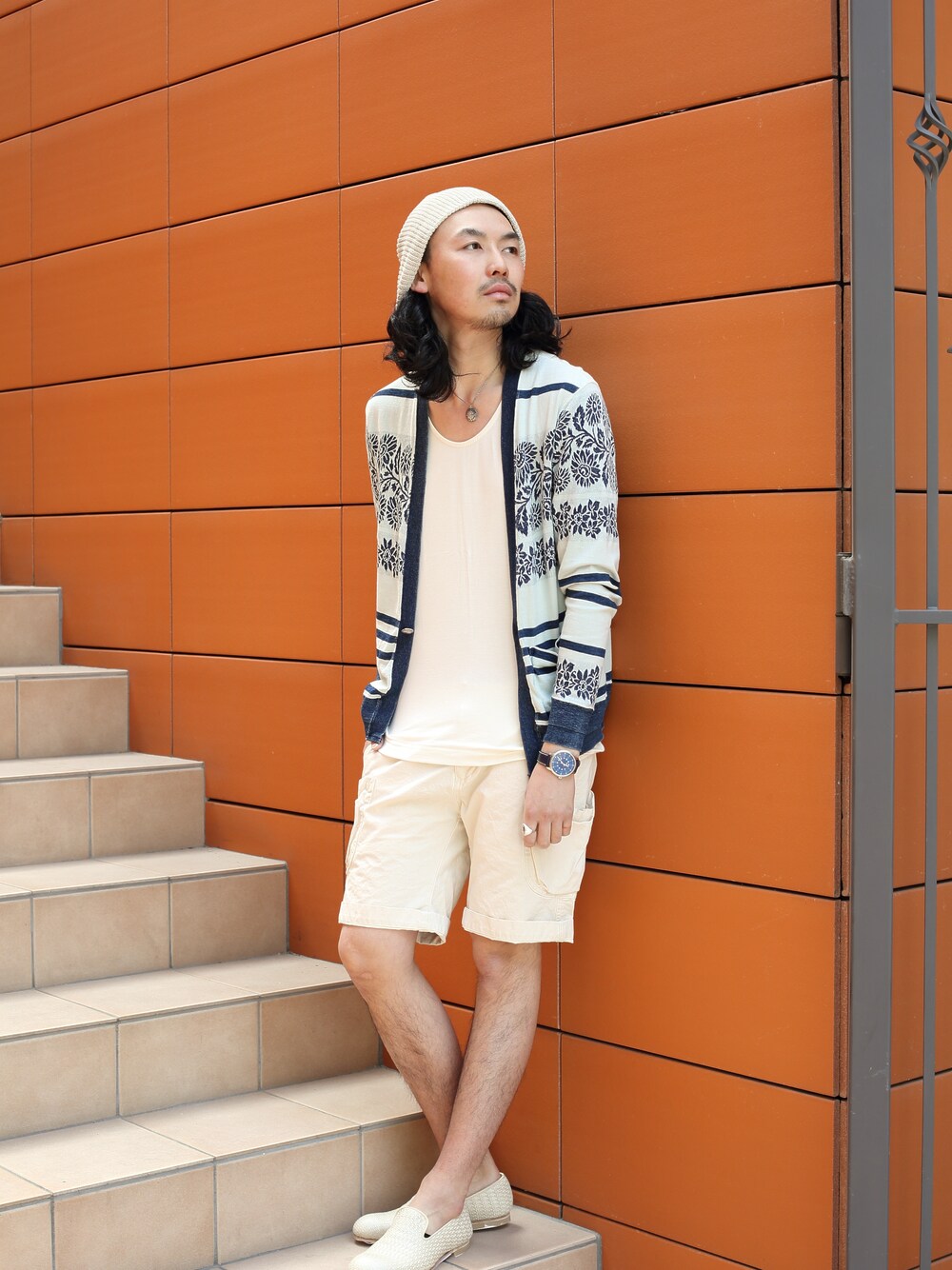 m.fujiiのカーディガン/ボレロ「REMI RELIEF (レミレリーフ) リネンJQ花ボーダーカーディガン (504)」を使ったコーディネート