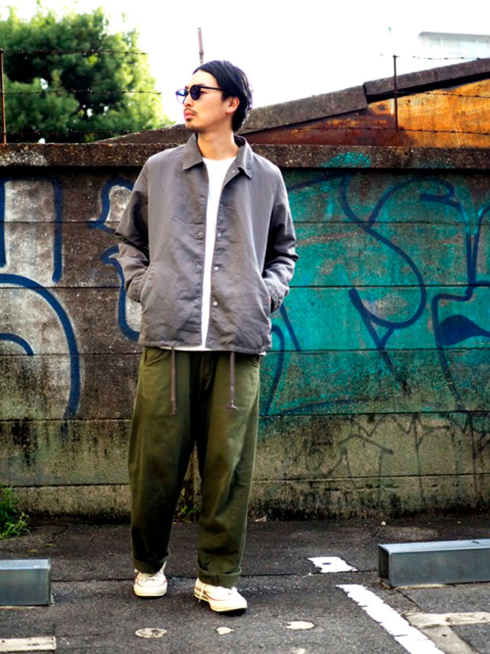 今の時期にはコーチジャケットがちょうどいい。 レミの新作コーチジャケットは独特な加工を施し味わい深い仕上がりに。 ワイドパンツとの相性も抜群、ストリート感も今っぽい。 本当にカッコいいので是非気にしといて下さいw