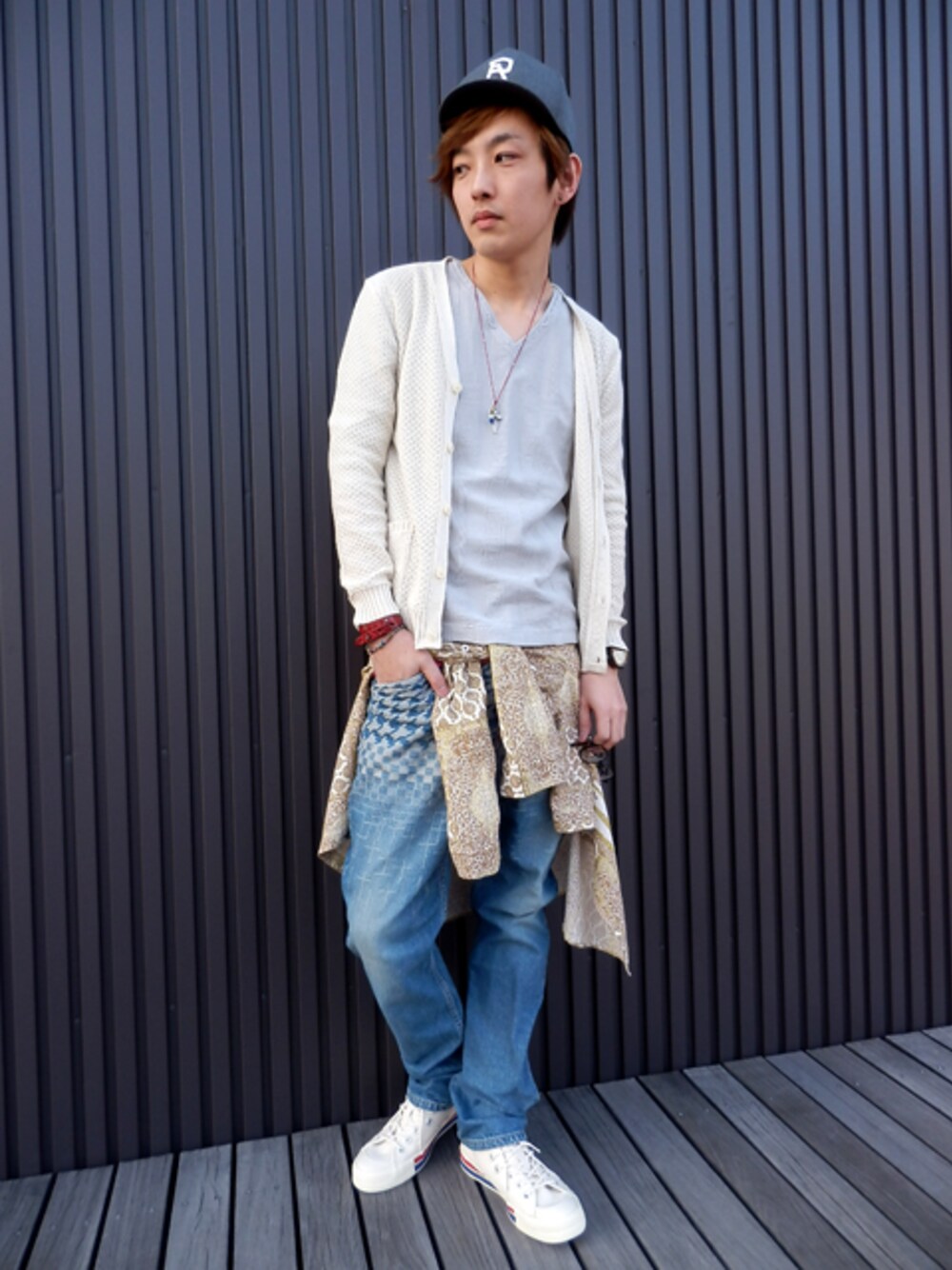 iroquois らしい柄シャツの腰巻きコーディネート☆ サルエルパンツにキャップで、ユルさのあるストリートMIX に😄 最近は背中が痛いです…(゜ロ゜) 運動不足をひしひしと感じております…(笑)