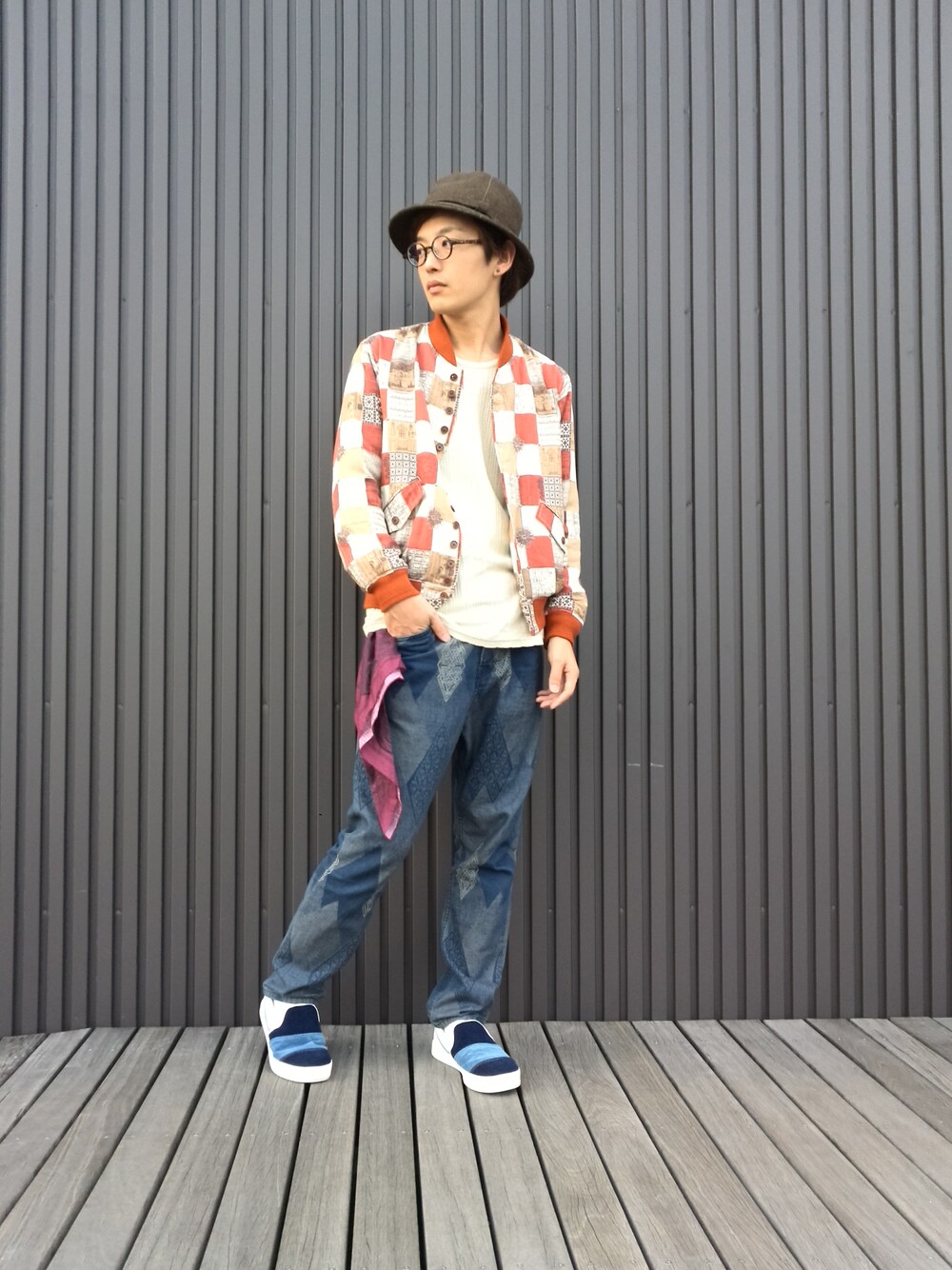 個性派コーディネート☆ 柄だらけです!!(  ̄▽ ̄) バンダナをベルトループに巻いて、アクセントにしてます♪