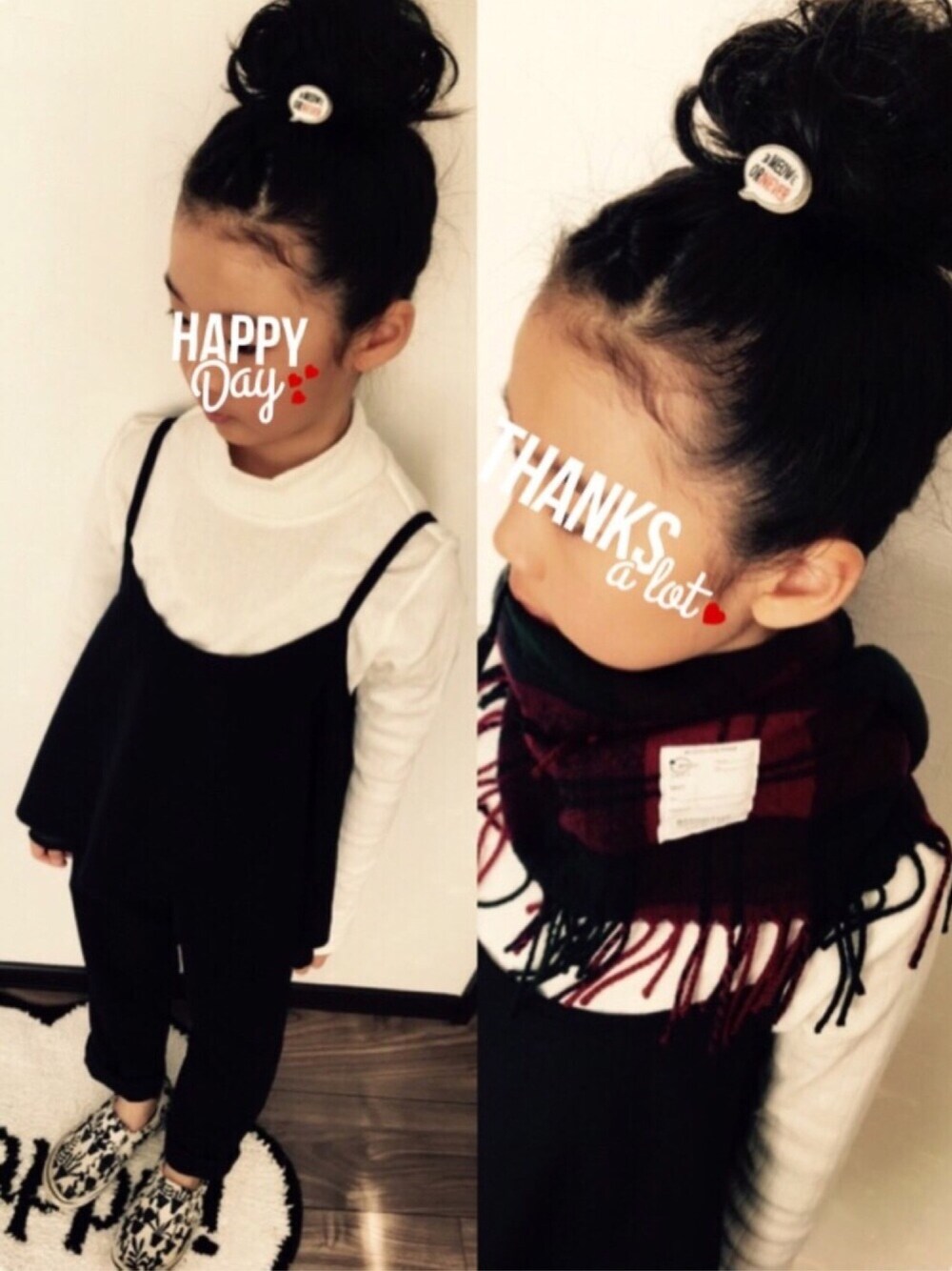 見て頂きありがとうございます😻 私も皆様の見るの楽しみですのでこれからも宜しくお願いします🌈 昨日の次女コーデ🤗 グローバルワークのセットアップ型良すぎます✨ グローバルワークは小さいサイズしかないと思ってたからお姉ちゃん達のは探した事も買った事なかったのですが、、、最近息子のを見てるとお姉ちゃんのサイズも少しあることに気が付きました❣️ 調子に乗って髪ゴム買ったけど、、、髪切ったんでした⁉️お団子ヘアするの大変でした😅