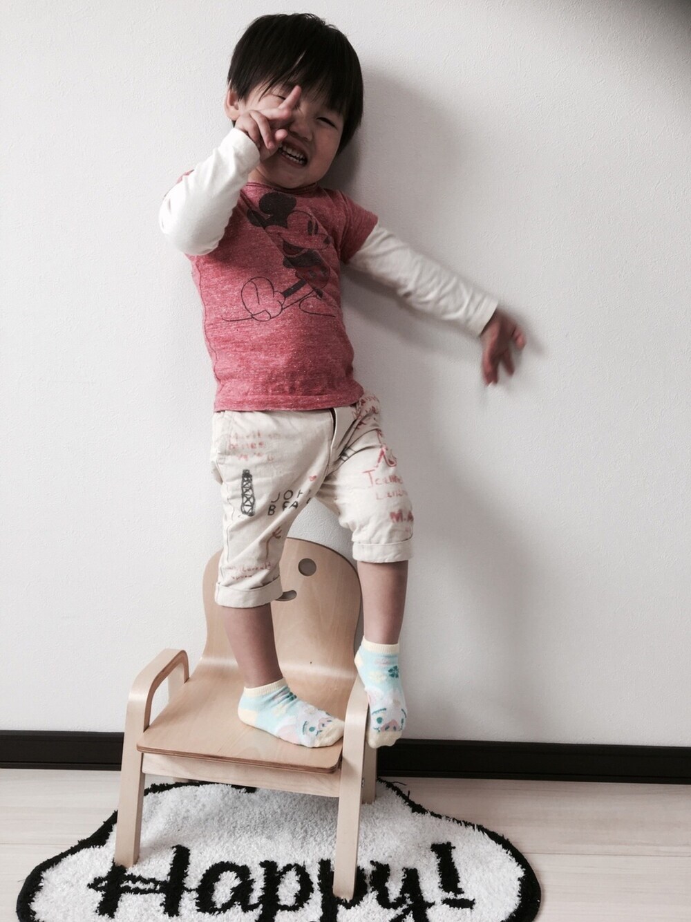 暖かくなって来たな〜♡と思ったらの雪☃️ Tシャツ、サンダル新調したのにまだまだ着せられそうになくて悲しいです😭 衣替えで去年までハマってた息子のデニダンシリーズ❣️去年は長ズボンだった7分丈パンツもつんつくてんでした❣️笑 足元はモアナ観に行った時に映画館で購入のプア靴下😊