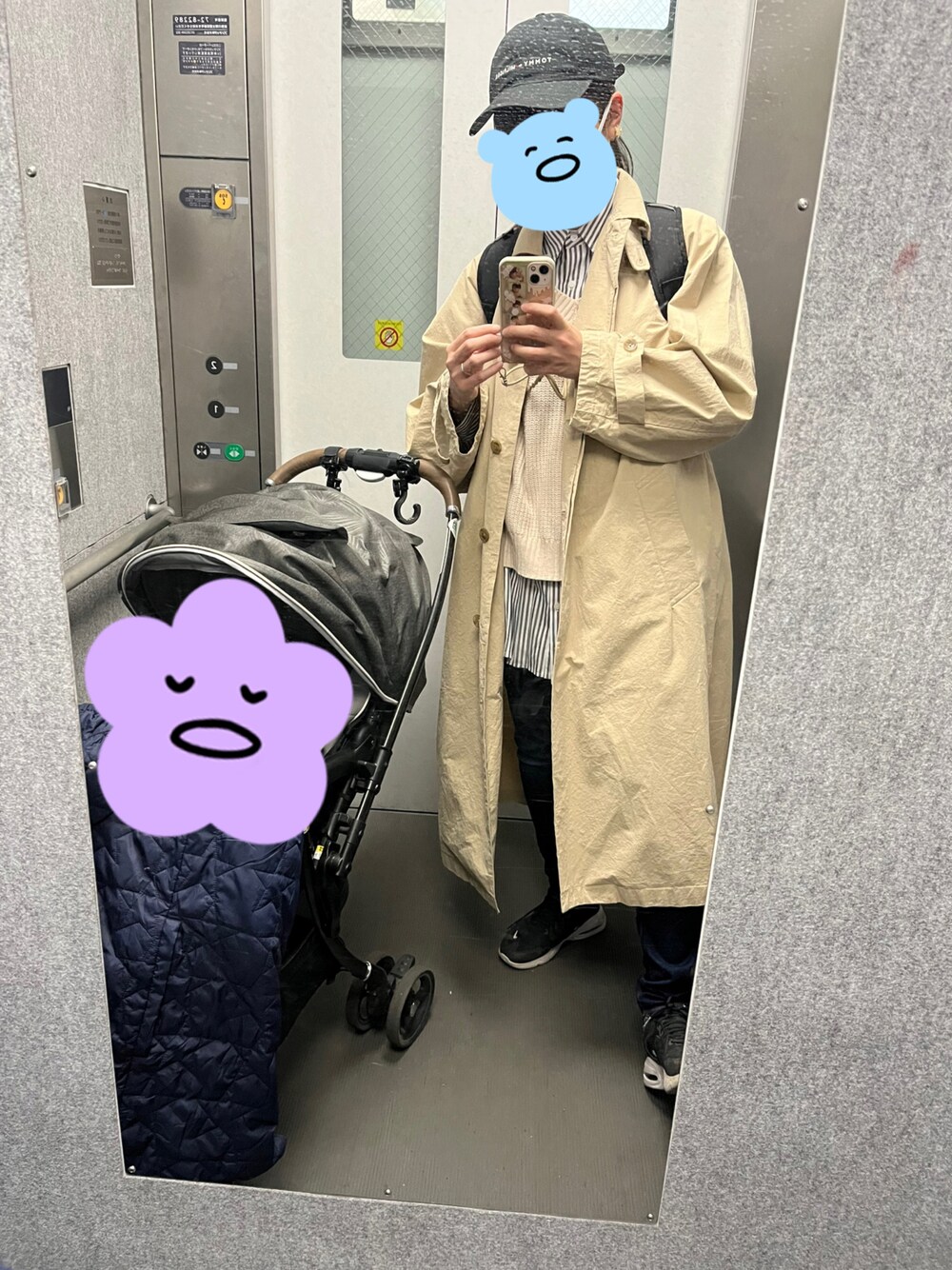 息子の習い事の体験教室に行った日。 最近息子氏、歩くのが楽しいみたい。 追いかけるの大変なのでパンツスタイル。