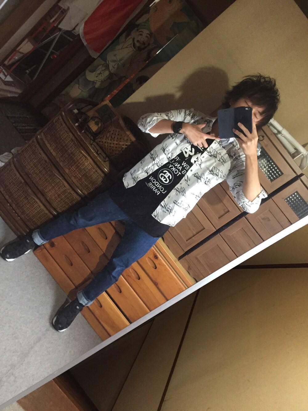 HAREで買ったシャツ〜英語の文字に一目惚れして買ってしまった、あとリーボック履いてます〜やっぱこの靴最高すぎっしょ! 髪型チャラいのはスルーしてください笑
