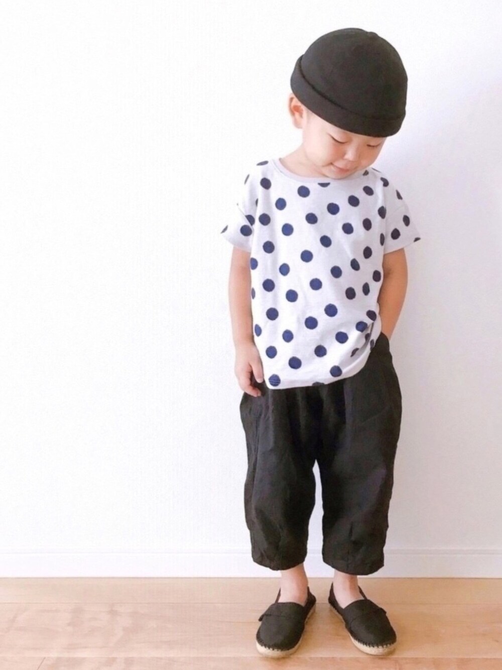 ご覧いただきありがとうございます ♡+followerフォルダの仲間入り どれもすごーく 嬉しいです トップス 水玉模様と生地感が好き ドロップショルダーと裾が少し丸くなっているところがとてもかわいい トップスsize:110 パンツsize:100 シューズsize:16 [身長96/体重14]
