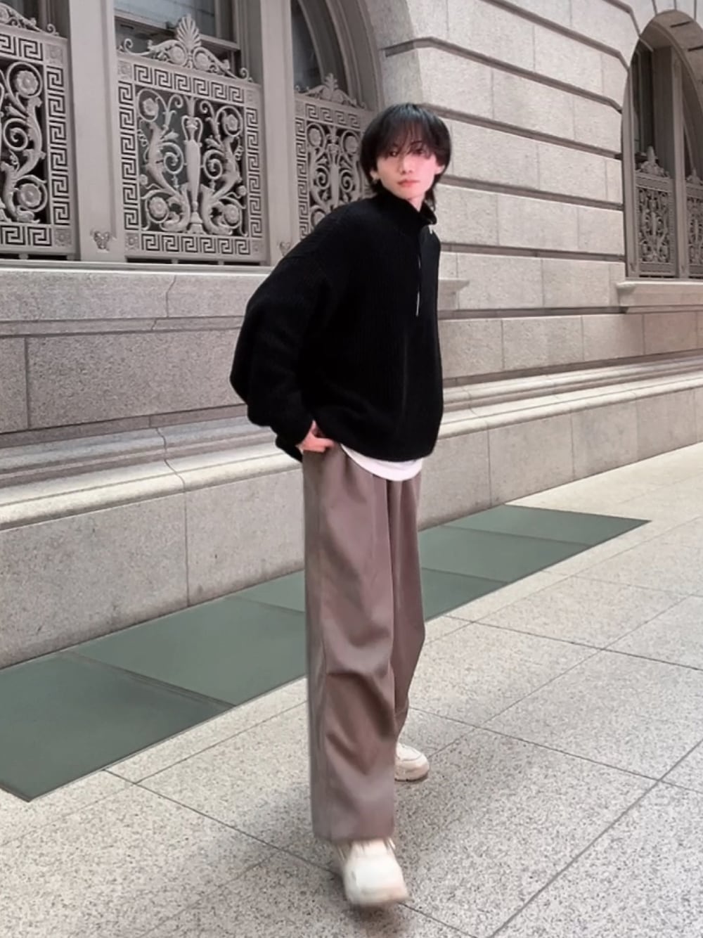 Instagram:@syxxo ハーフジップニットを使った、 ゆるコーデ🌟