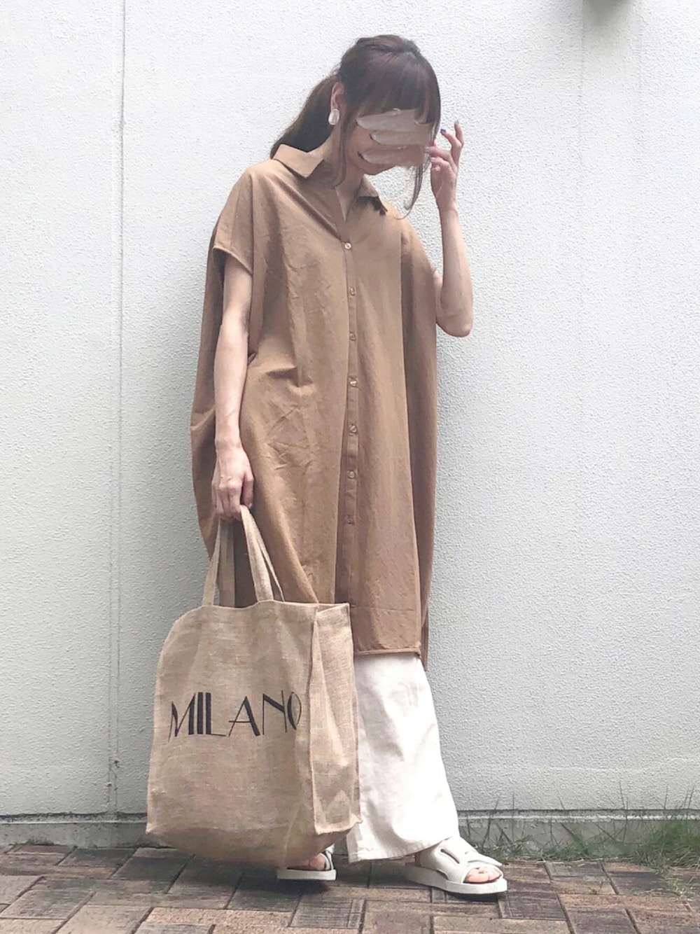 syrupのシャツワンピース「シャツカラー前開きワンピース」を使ったコーディネート