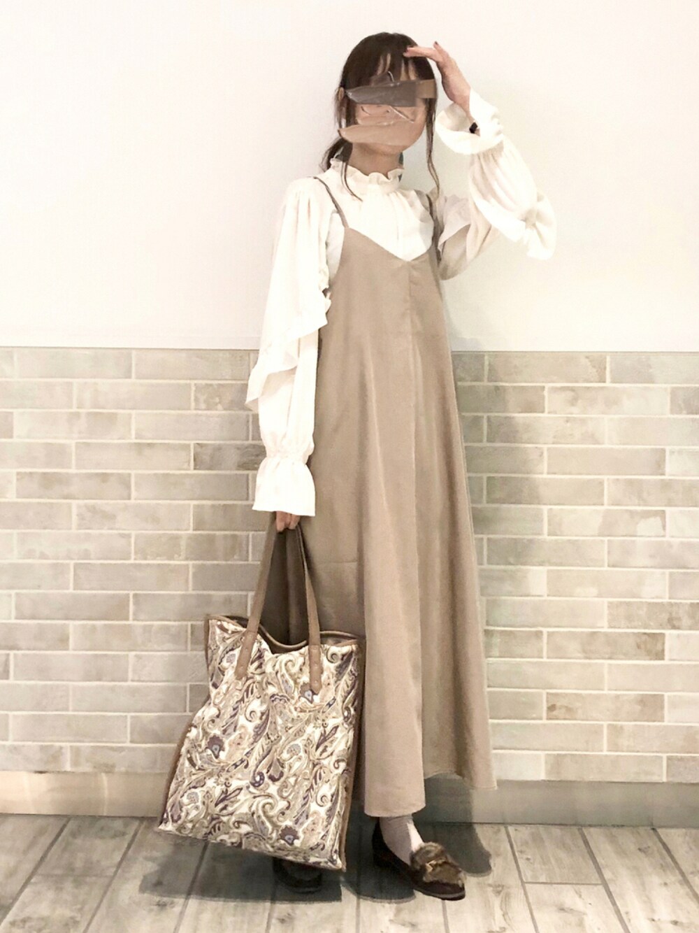 ご覧いただきありがとうございます ♡+フォロー、フォルダin感謝です🧸♥️ 壁と同化!笑 お仕事帰りpicなので バッグの中も荷物ぎゅうぎゅうだし 真のリアルコーデ🙄 ファーのローファー かなり前に買ったものだけど お気に入りで毎年必ず履いてる☺️