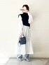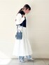 閲覧、♡+フォロー、フォルダin ありがとうございます🐰💕 2022ss/新作コーデ🌸 まっしろで少し透け感あるところが 春らしい軽さを醸してくれる♪ ティアードの切り替えがすこし上めにあるのが、個人的に UNFIELDさん、さすがや…🥺✨ と思ったところで笑 この切替位置によって 見た目バランスかなり変わるので ティアード履くとなんか重心が下に下がって いつもよりスタイル悪く見えちゃうなって方は、この部分気にして選ぶと良いかもです◎ 本日1000円クーポン日♥️ 本当は首元詰まってる時は 足首や手首見せて、抜けを作りたいところ だったのですが。 寒かったからソックスコーデ🩰 寒さには勝てん🥺 靴も迷って足元ギンガムの写真も。 どっちがいいかな?🤔