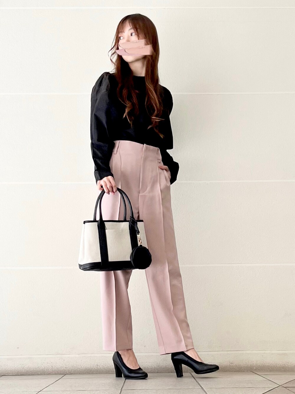閲覧、♡+フォロー、フォルダin ありがとうございます🐰💕 ブラック×ピンクのシンプルコーデ♡ ハイウエストは足長く見えるー♪