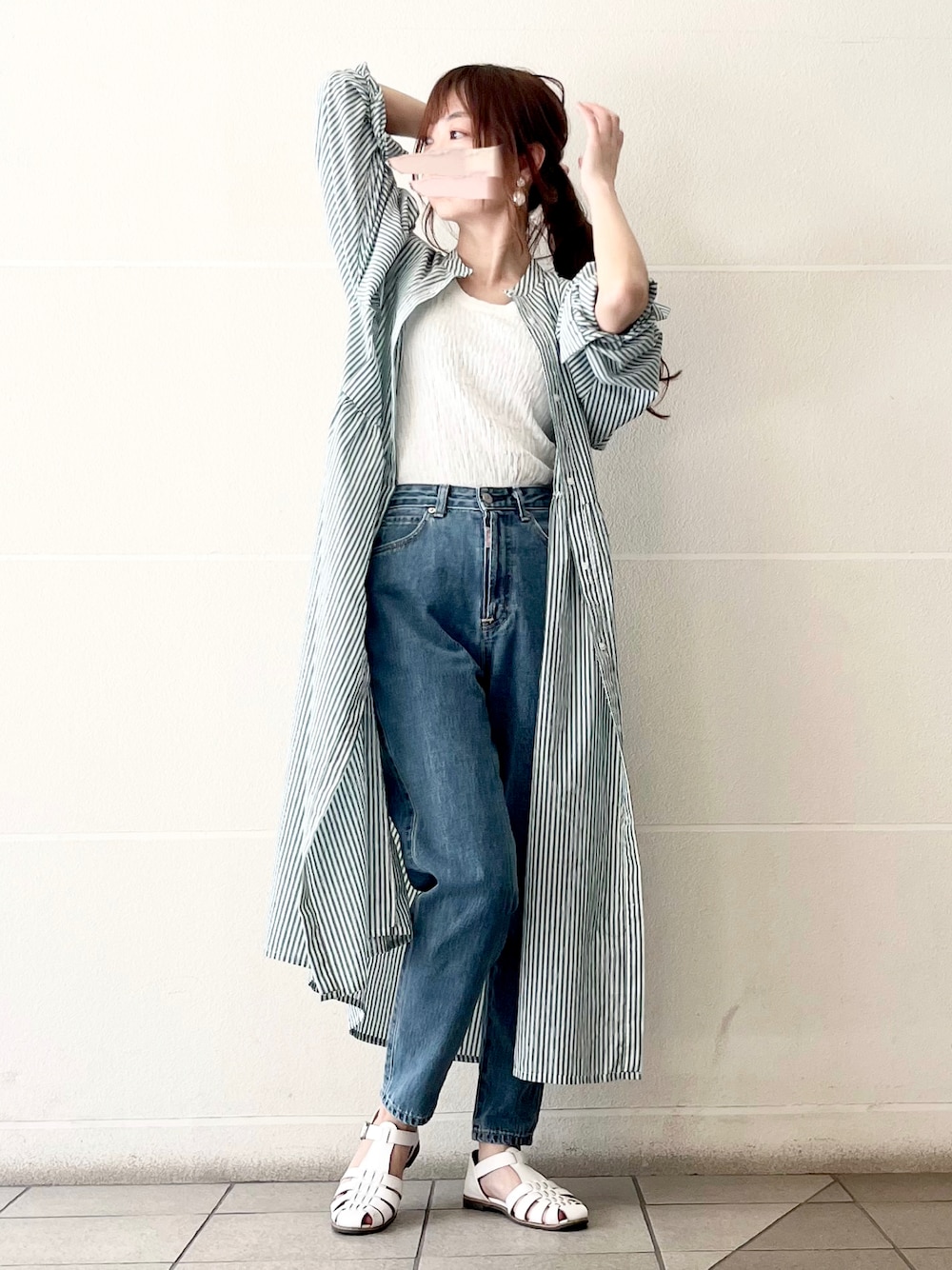 閲覧、♡+フォロー、フォルダin いつもありがとうございます🐰❤︎ コーデの感想もDM頂けた時はとても嬉しいので、お気軽に😉 【SOMETHING/サムシング】 年間ベストセラー FRENCH NOUVEAU W フロントルーミー スリムデニムパンツ/Sサイズ あったかい日☀︎ タンクトップ×デニムに シャンワンピを羽織として。 このシャツワンピはジルちゃんとのコラボで 着用してたもの。 着回しでも印象変わるかと🤔✨ グリーンで今年らしさを。 グルカで初夏っぽさプラス🌱 デニムはウエストは細く、 スリムパンツだけど太ももまわりは程よくゆとり☺️ でも見た目はスッキリという神デニム😭 さらに生地がやわらかくて 履き心地よすぎるのです🥺 ヘビロテ確定!というかヘビロテしてます笑 まさかの連続デニム投稿になっちゃいましたー😂♥️