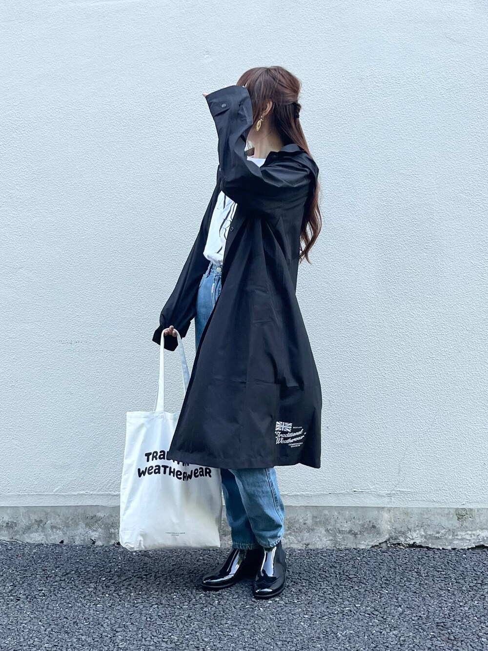 閲覧、♡+フォロー、素敵なフォルダin いつもありがとうございます❤︎❤︎ 【Traditional Weatherwear】 ◾️PENRITH RAIN PACKABLE/ パッカブルレインコート ブラック/M ◾️SIDE GORE WINGTIP RAIN BOOTS 37サイズ シンプルにモノトーンで。 見える分量が黒すぎると季節的に重いので 効果的に白を🕊 レインコートのロゴ部分もかわいくて好き♡ フード部分取り外しできるのですが、 私はフードがあった方がコーデ的にバランス取れるので外さないタイプです🤫