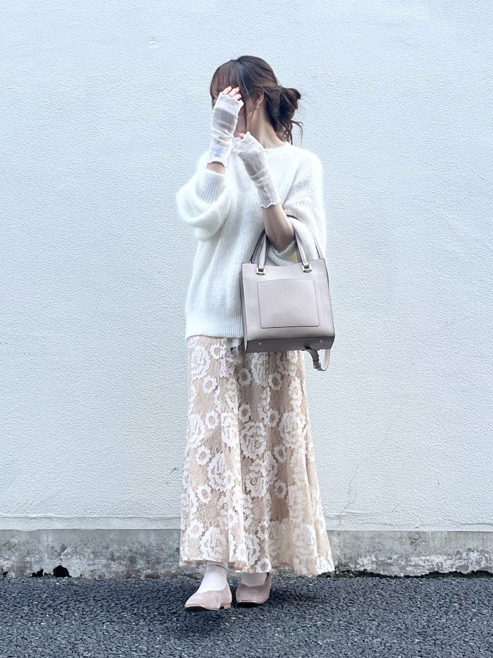 閲覧、♡+フォロー、素敵なフォルダin いつもありがとうございます🐰 昨日のGUコーデと真逆にレディライク💄 使ってる色はほぼ昨日と同じ! よかったら見比べてみて👀❤︎❤︎ 花柄レースにふわふわシャギー☁️☁️ シャーリングのアームカバーで品のよい デートコーデ🫶 UNFIELDのマーメイドは ぺたんこパンプスなのにスタイルアップして見えるから最高🥺✨✨ 去年のだけどまだ買えるし半額近いからオススメ。このスカートも履いてると「どこの?」ってよく聞かれる☺️ ANDSHINのバッグも久しぶりに♫ 軽くてほんと使い勝手よいのです。