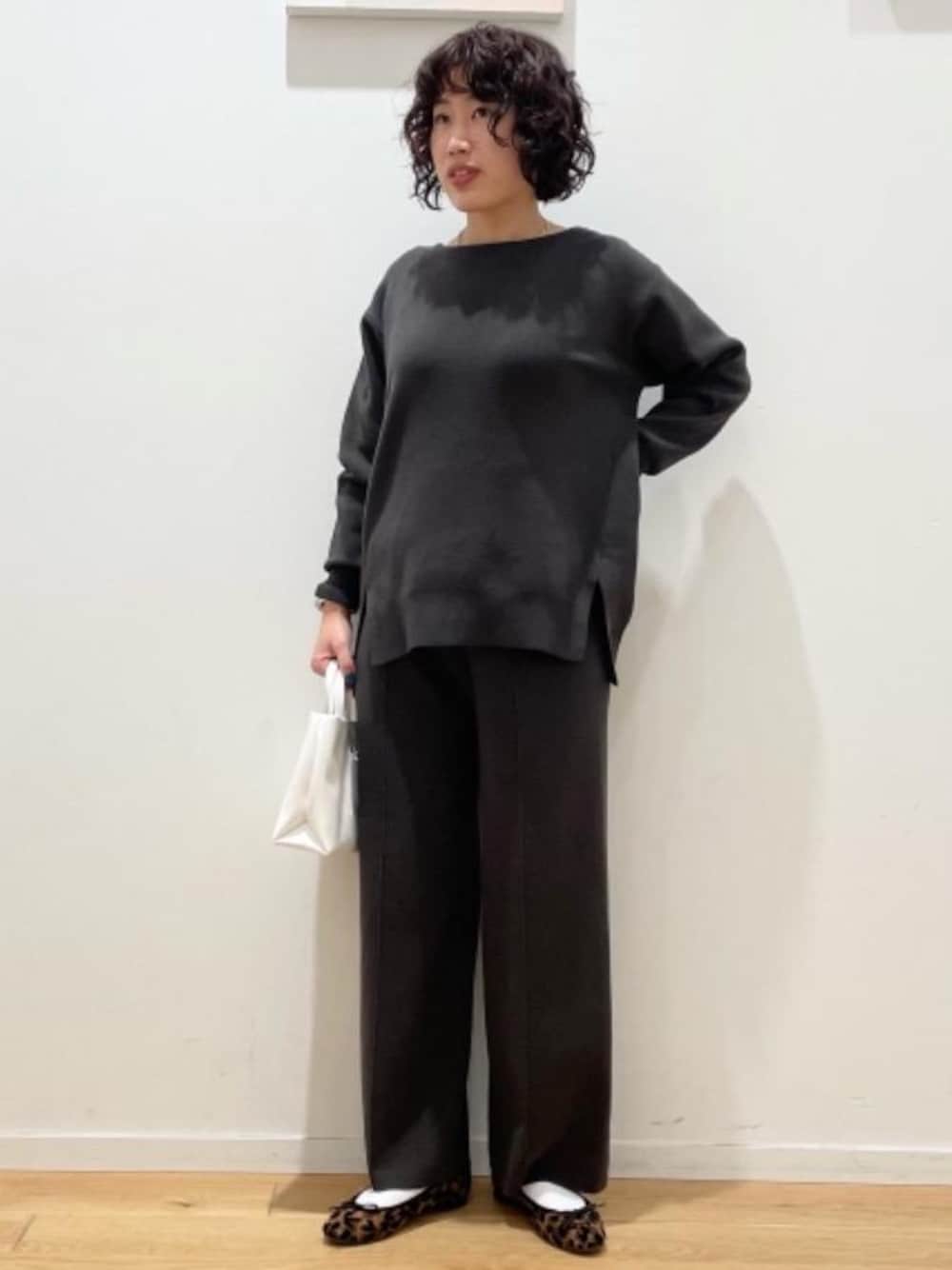 身長:160cm 【着用サイズ】セットアップ(free)シューズ(24.5cm) 身長160cmでパンツの丈が長めでしたので、ウエスト位置を上げて履いています。セットアップなので色々な着こなしが楽しめそうです。