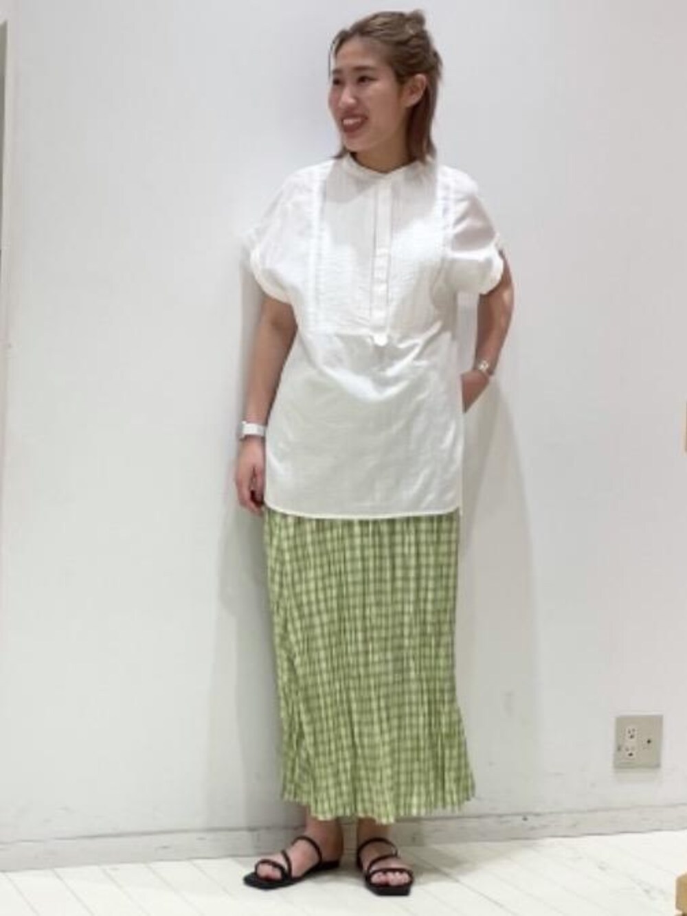 身長:160cm ホワイトとグリーンの合わせで春を意識したカラーリングにしました。