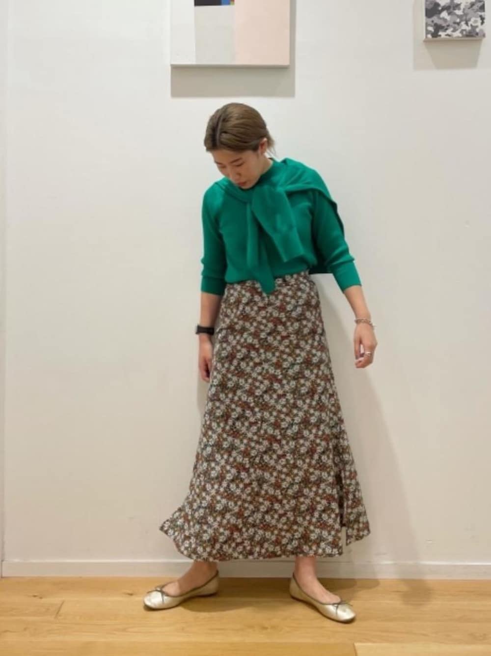 身長:160cm 普段サイズ:スカート36/シューズ24cm 【サイズ感】 ニット:標準的 スカート:標準的 シューズ:やや小さめ 【コーディネートポイント】 スカートの色に合わせて、グリーンニットを着用しました。