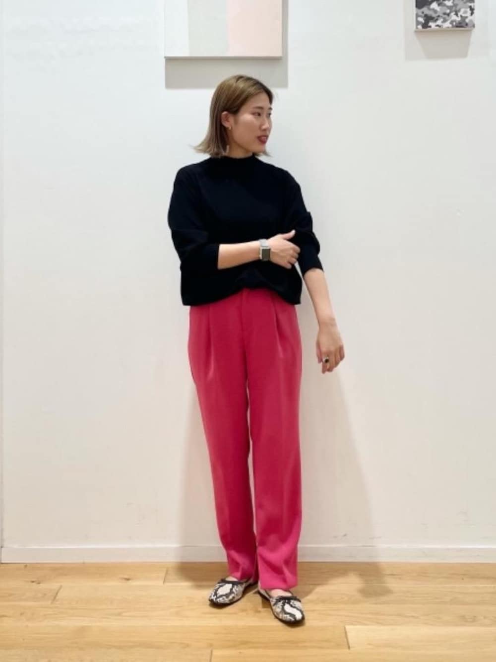 身長:160cm 普段サイズ:パンツ38/シューズ24cm 【サイズ感】 トップス:標準的 パンツ:ゆったりめ シューズ:標準的 【コーディネートポイント】 黒とピンクの合わせに負けない、パイソン柄のバレエシューズをあわせました。