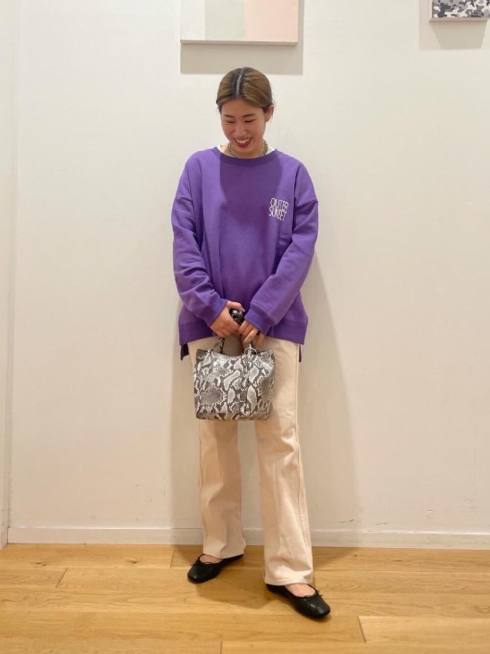 身長:160cm 普段サイズ:ボトムス38/シューズ24cm 【サイズ感】 スウェット:ゆったりめ ボトムス:やや細み シューズ:やや小さめ 【コーディネートポイント】 全体的にカジュアルなコーディネートですが、 フレアシルエットが特徴のレディデニムを合わせて女性らしさを感じさせるコーディネートにしました。