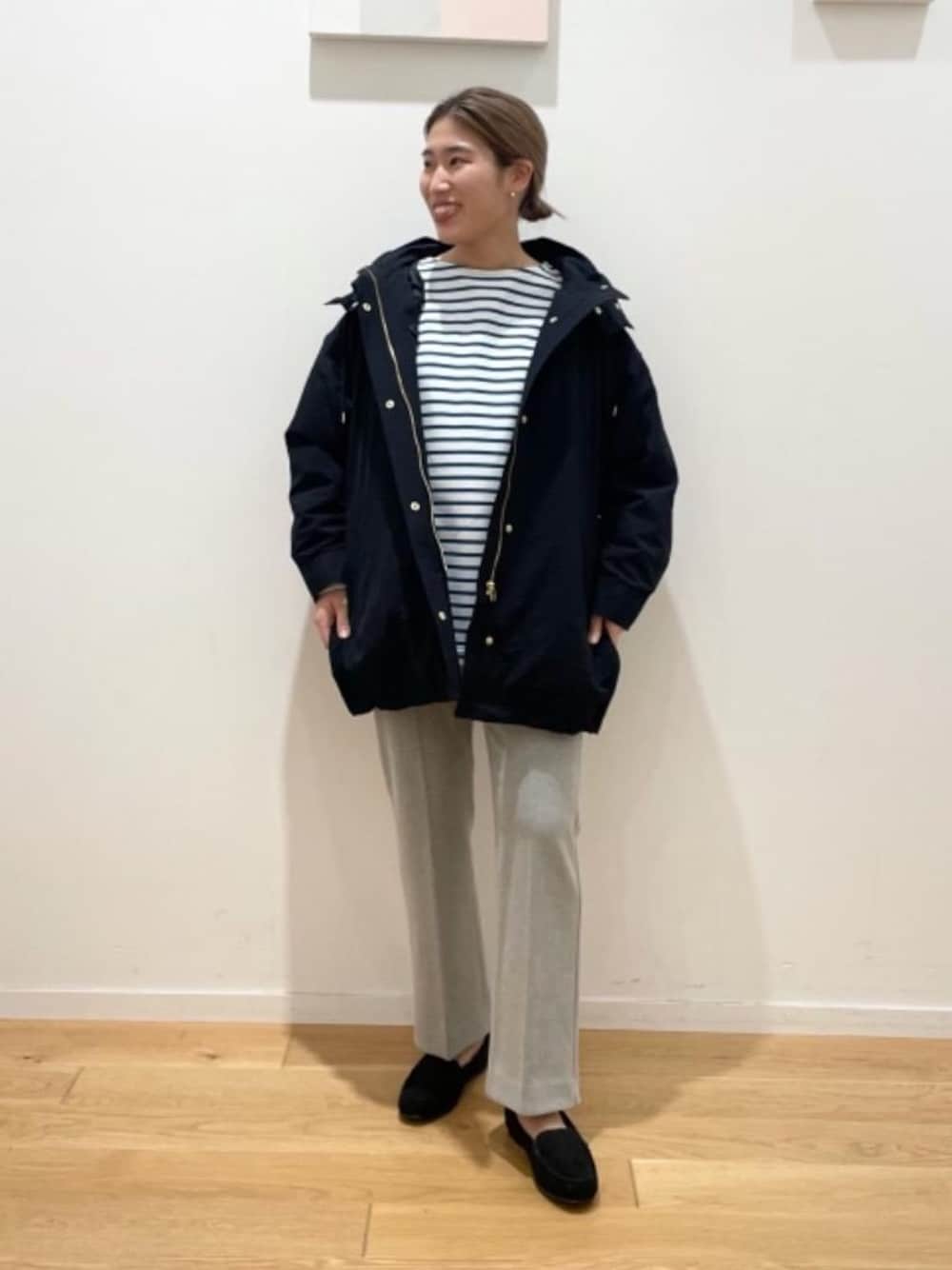 身長:160cm 普段サイズ:アウター36/パンツ38/シューズ24.5 【サイズ感】 アウター:ゆったりめ パンツ:やや細身 シューズ:やや大きめ 【コーディネートポイント】 普段であれば、アウターは36サイズですがゆったり着たかったので38サイズを選びました。 動きやすさ重視のカジュアルなスタイリングにしました。