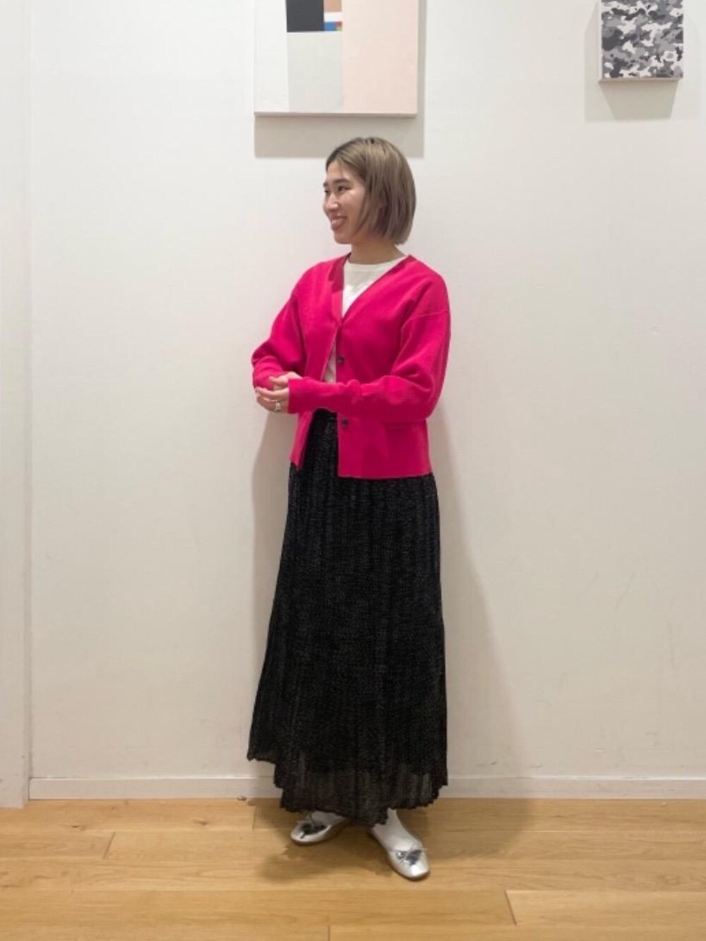 身長:160cm 普段サイズ:ボトムス38/シューズ24.5cm 【素材感】 カーディガン:少し張りがある スカート:柔らかい 【サイズ感】 カーディガン:標準的 スカート:ゆったりめ シューズ:標準的 【コーディネートポイント】 コンパクトな着丈のカーディガンなので、ロングスカートを合わせて、全体のバランスを意識しました。