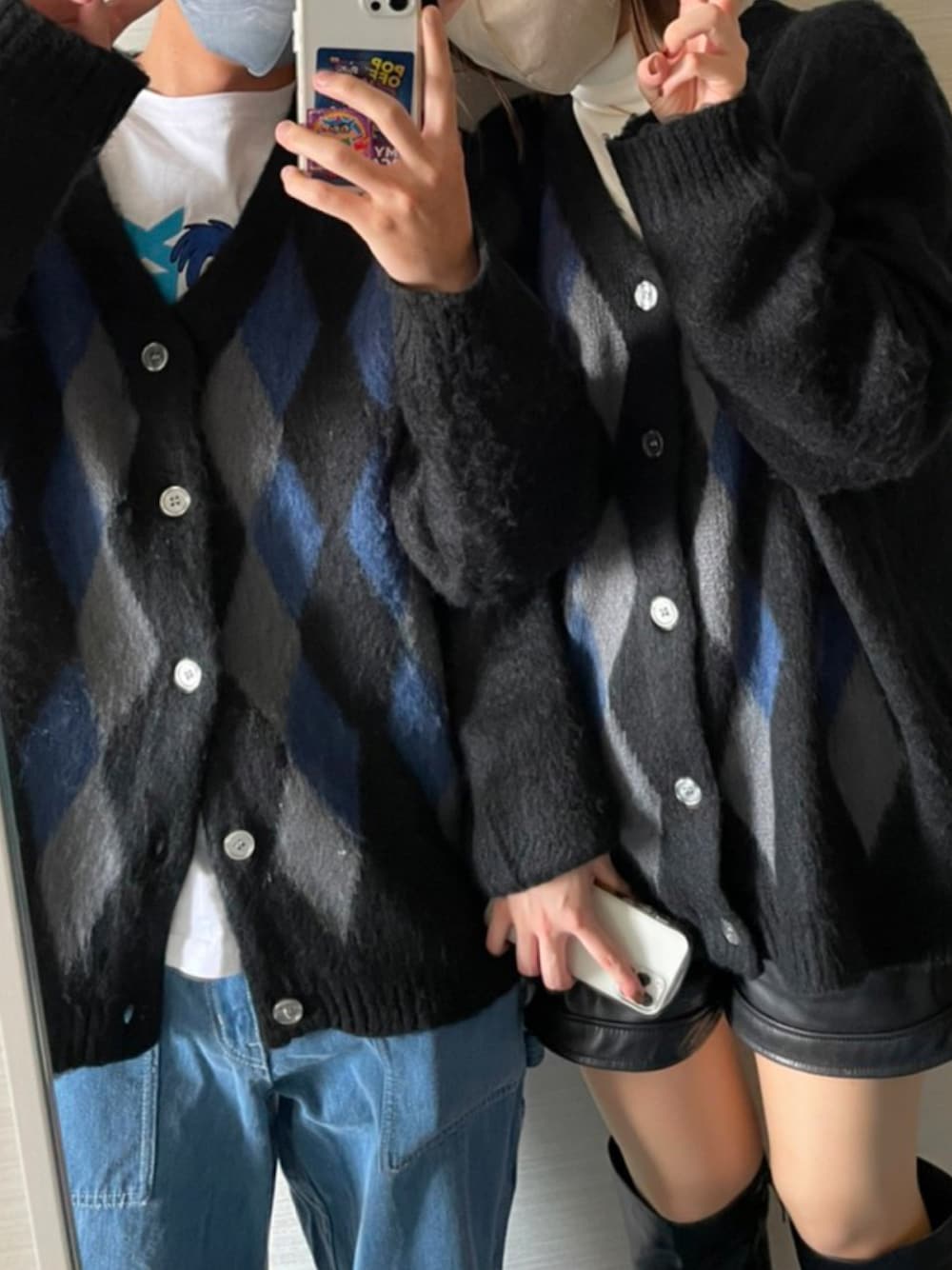 ぽにのカーディガン/ボレロ「【KOOKY'N/クーキー】ウール混アーガイルモヘアライクカーディガン」を使ったコーディネート