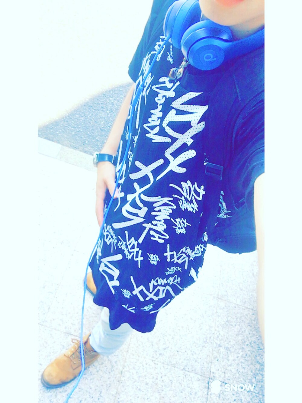 普段はシンプルな服装が好きなんですが、久しぶりにストリート系に仕上げました。ちなみに、白と黒のボーダーのハットも被っております。