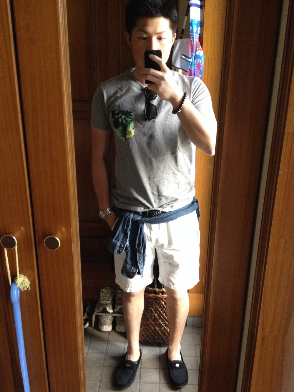 Tシャツ:Hurley デニムシャツ:ARMANI EXCHANGE パンツ:URBAN RESEARCH 靴:DIESEL 時計:DIESEL ブレスレット:ARMANI EXCHANGE
