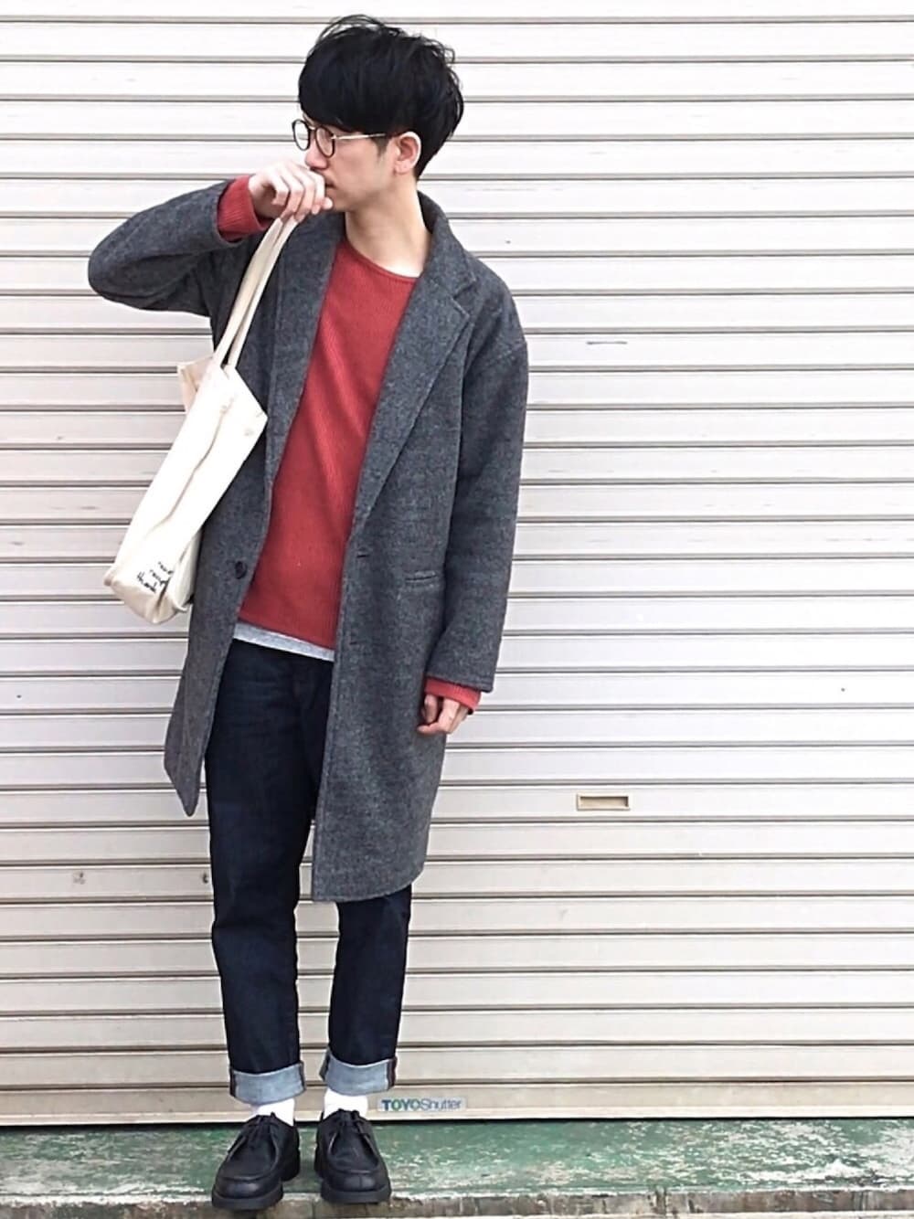 しゅんたろーのチェスターコート「mj4910-Sliver Knit Wide Chester Field Coat コート」を使ったコーディネート