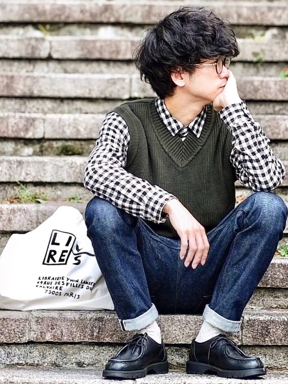 しゅんたろーのベスト「Vネックソリッドベスト」を使ったコーディネート
