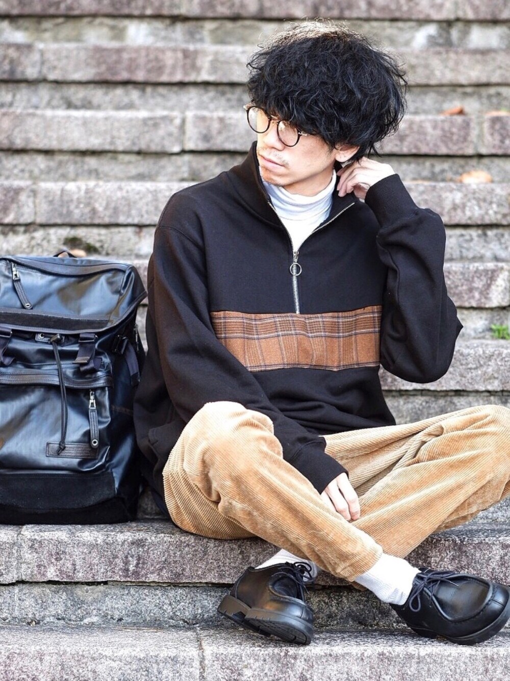 しゅんたろーのスウェット「YARD PLUS チェックハーフジップスウェット」を使ったコーディネート