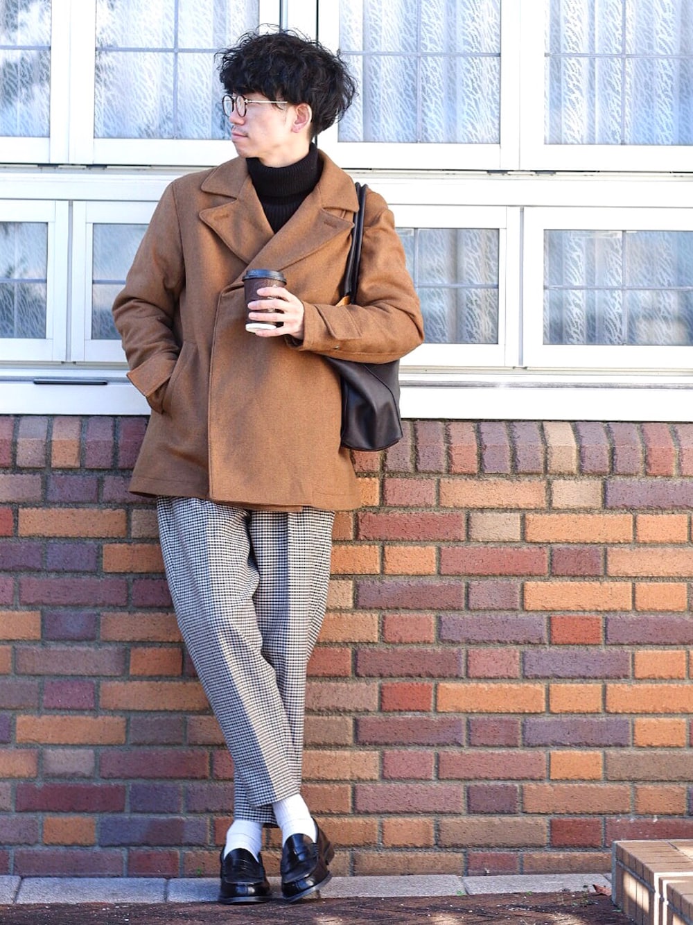 しゅんたろーのピーコート「Casper John ダウン入りスナップPコート」を使ったコーディネート