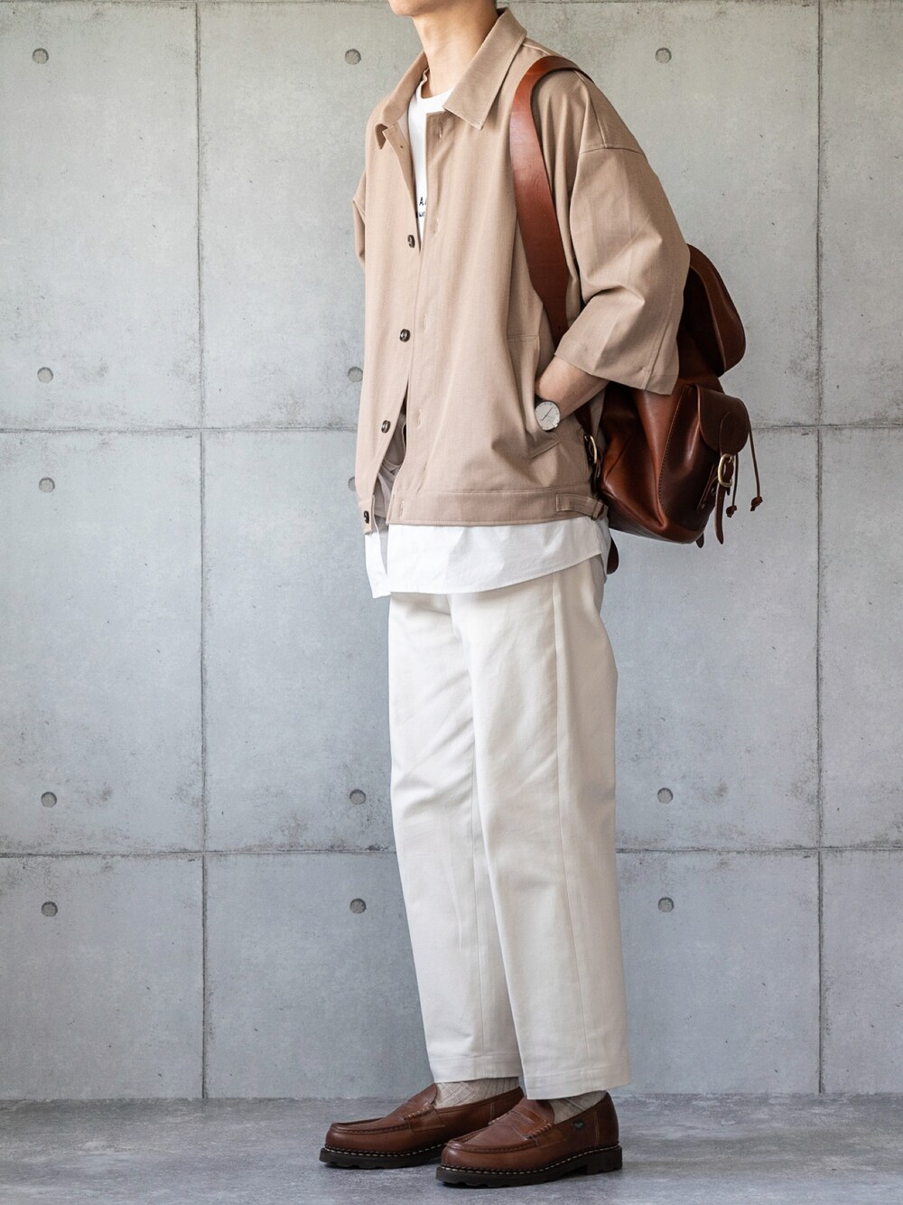 ╼╼╼╼╼╼╼╼╼╼╼╼╼╼╼╼╼╼╼╼╼╼╼╼╼╼╼╼╼╼ オリジナルアイテムのシャツブルゾン グレイッシュベージュ×ホワイトは かなりオススメの色合わせ ╼╼╼╼╼╼╼╼╼╼╼╼╼╼╼╼╼╼╼╼╼╼╼╼╼╼╼╼╼╼ *shirt/anown* シンプルな夏コーデにアクセントを 与えてくるレイヤードシャツブルゾン ドロップショルダーでゆったり感のある シルエットになっています 着心地の良い素材感でストレス無く 着用できます *pants/Steven Alan* ゆったりとしたシルエットで 生地もしっきりしていて 一年通して履けるパンツです *shoes/Paraboot* 上品な色味と風合いのデザイン コーディネートに取り込みやすく 大人カジュアルの必需品です *bag/SLOW* このバッグを背負ってるだけで お洒落になった気分になれます 収納力もあり色味も味があってお気に入り ╼╼╼╼╼╼╼╼╼╼╼╼╼╼╼╼╼╼╼╼╼╼╼╼╼╼╼╼╼╼ Instagramのアカウントは消えてしまい コチラのアカウントで再開しております 👉syuntaro___(アンダーバー3個) ╼╼╼╼╼╼╼╼╼╼╼╼╼╼╼╼╼╼╼╼╼╼╼╼╼╼╼╼╼╼
