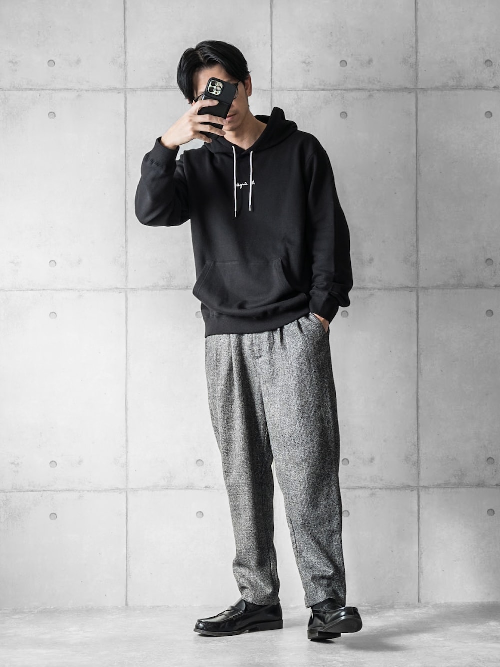 ╼╼╼╼🅿🅾🅸🅽🆃╼╼╼╼╼╼╼╼╼╼╼╼╼╼╼╼╼╼ モノトーンで落ち着きのある シンプル秋コーデ 革靴を合わせて大人な雰囲気に #PR#agnesb. ╼╼╼╼🅸🆃🅴🅼╼╼╼╼╼╼╼╼╼╼╼╼╼╼╼╼╼╼╼╼ *hoodie/agnesb.* 秋から春先まで長いシーズン着用できる 万能アイテム やや小さめにデザインされたロゴも アクセントになります ╼╼╼╼🅸🅽🆂🆃🅰🅶🆁🅰🅼╼╼╼╼╼╼╼╼╼╼╼╼╼ Instagramのアカウントは消えてしまい コチラのアカウントで再開しております 👉syuntaro___(アンダーバー3個