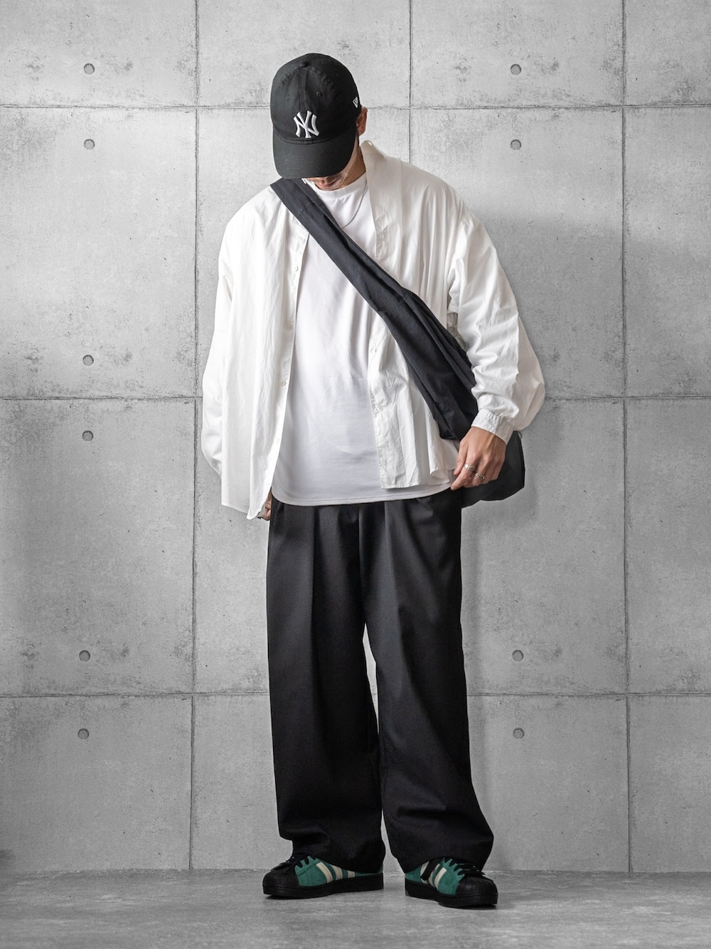 ╼╼╼╼🅿🅾🅸🅽🆃 ╼╼╼╼╼╼╼╼╼╼╼╼╼╼╼╼╼╼ 白シャツ×ワイドパンツのモノトーンコーデ。 黒小物で全体を引き締め、 足元のグリーンでアクセント ╼╼╼╼🅸🆃🅴🅼╼╼╼╼╼╼╼╼╼╼╼╼╼╼╼╼╼╼╼╼ *shirt/FREAK'S STORE* ビッグシルエットで袖ボリュームのデザイン 程よいゆったりさと丈がリラックス感が あってオススメのアイテム *pants/WETTEMPT* シルエットと丈感がお気に入り リラックス感があって色んなコーデに 合わせやすいアイテムです ╼╼╼╼🅸🅽🆂🆃🅰🅶🆁🅰🅼╼╼╼╼╼╼╼╼╼╼╼╼╼ Instagramのアカウントは消えてしまい コチラのアカウントで再開しております 👉syuntaro___(アンダーバー3個
